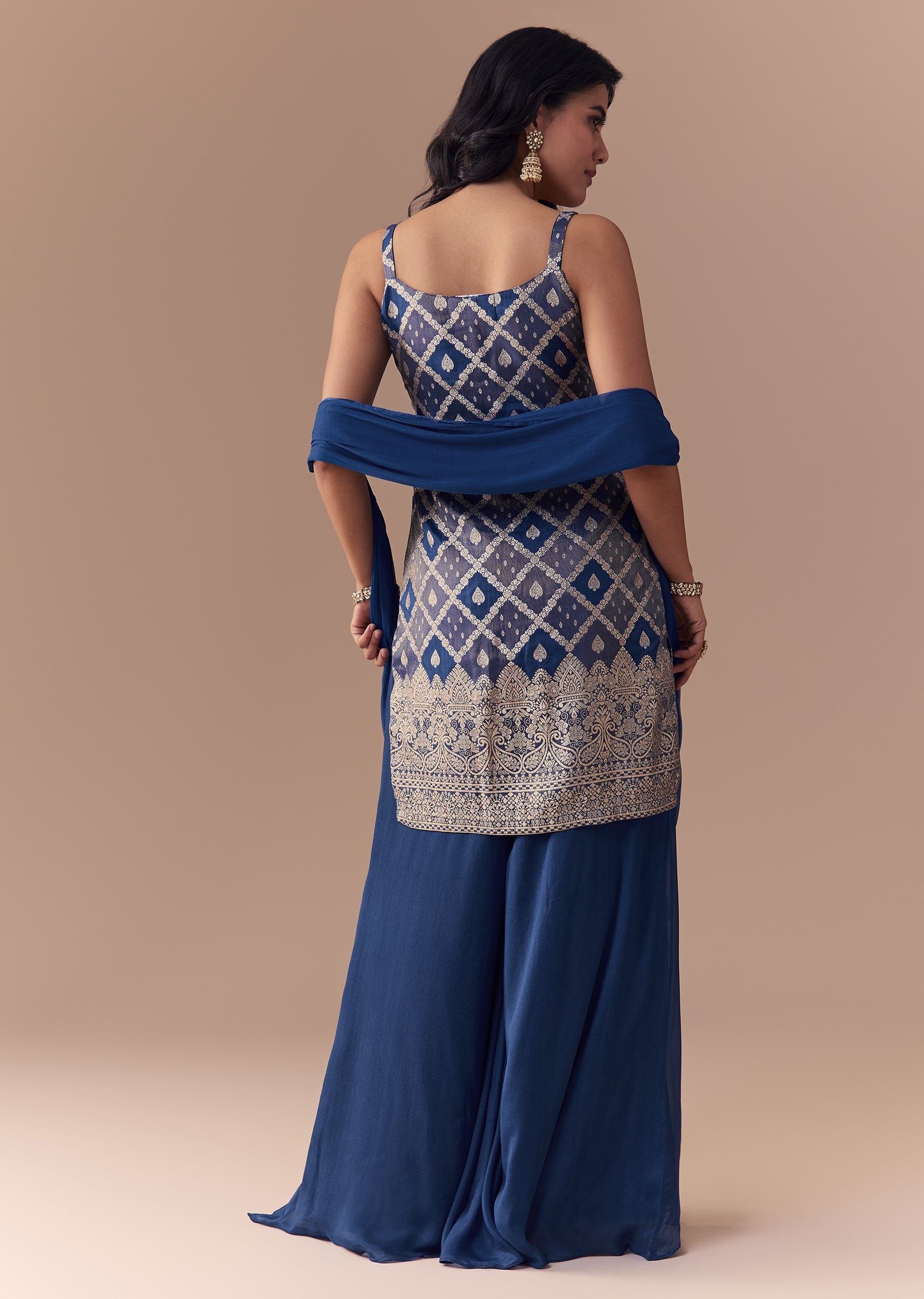 Blue Jacquard Woven Kurta Palazzo and Dupatta Set