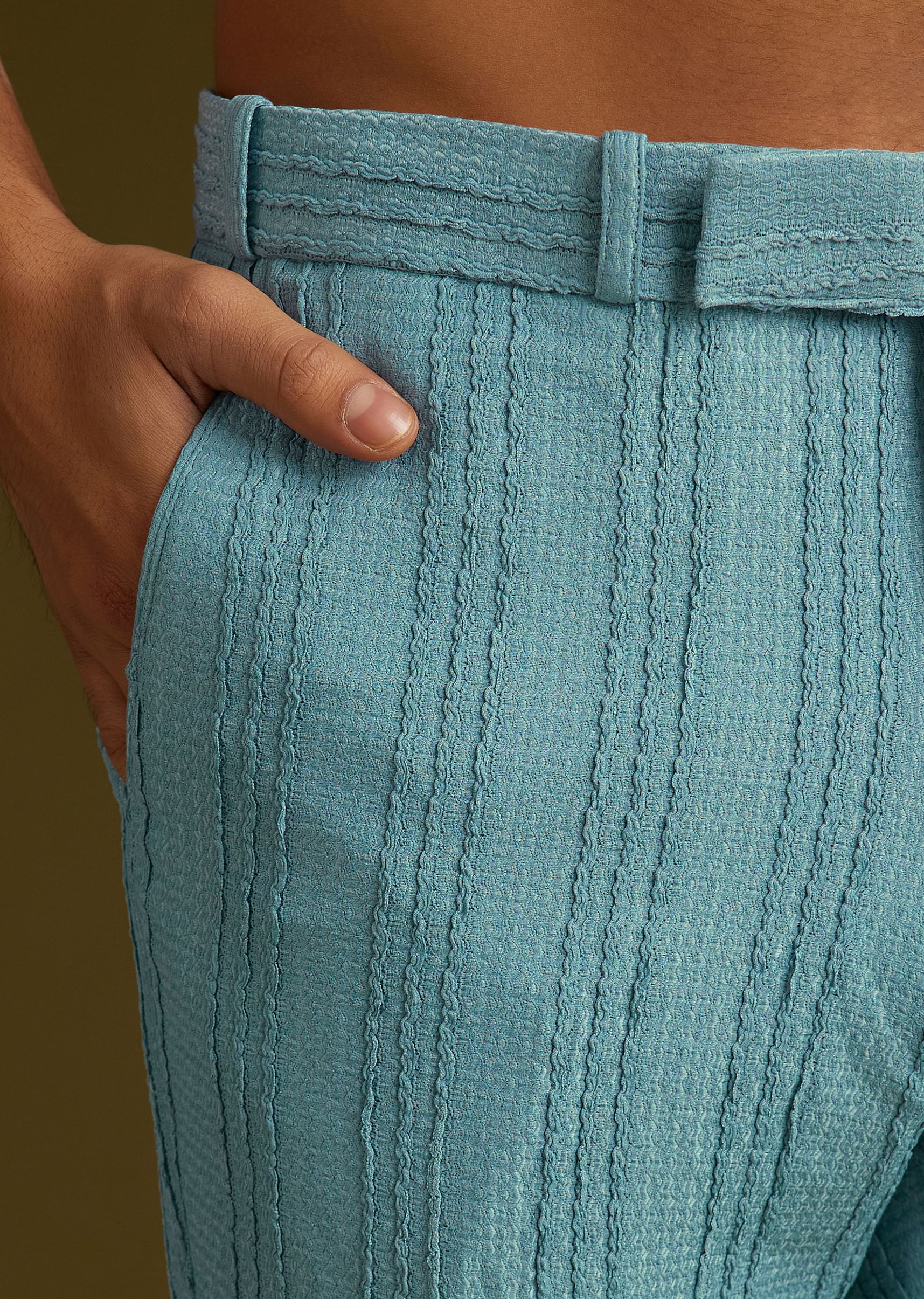 A sophisticated blue knit kurta jacket set adorned with moti and stone embellishments. The mandarin collar and full sleeves add to its opulent aesthetic..Awarded As The Most Trusted Brand We'Re Delivering Styles You Love Just As Promised.