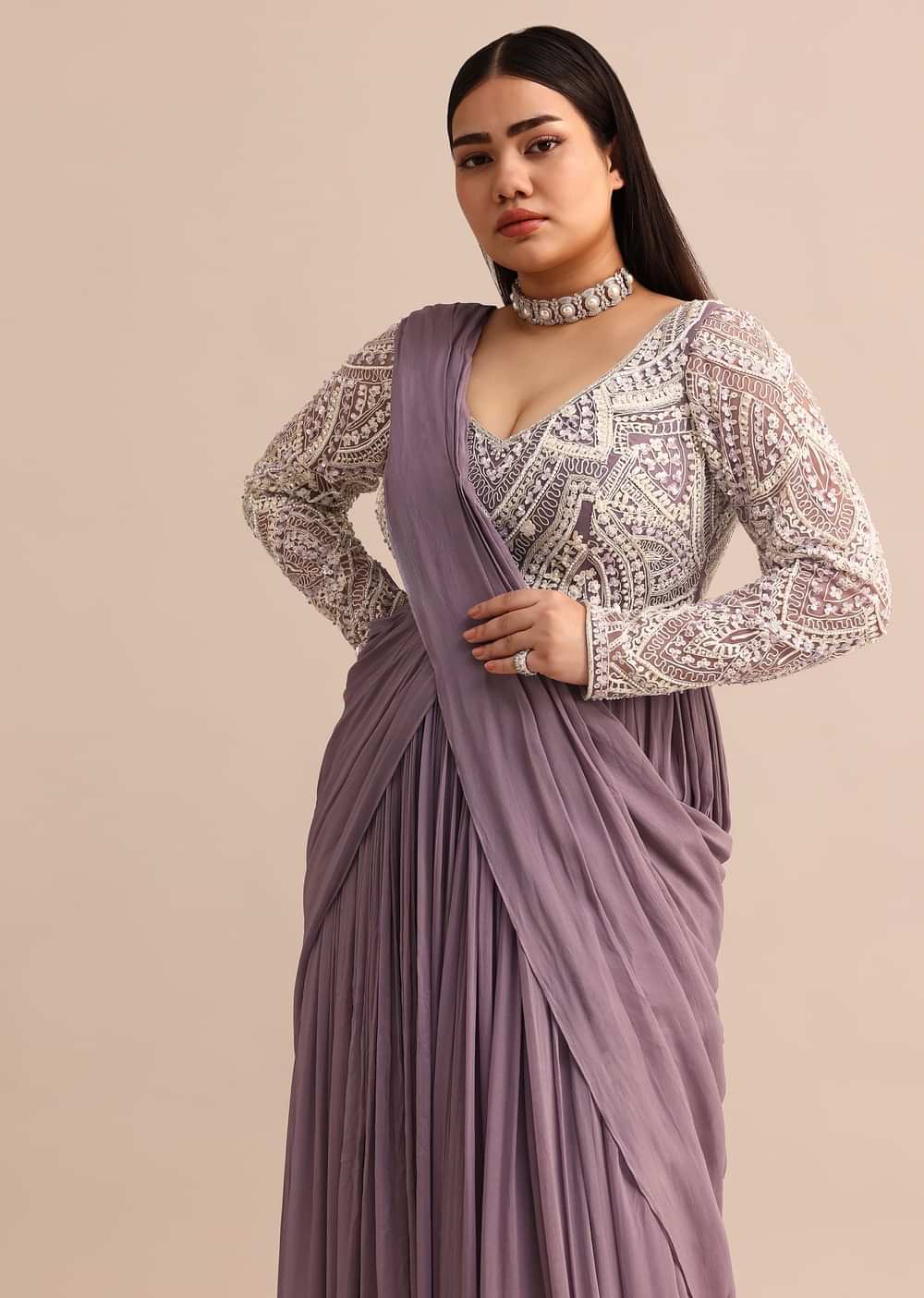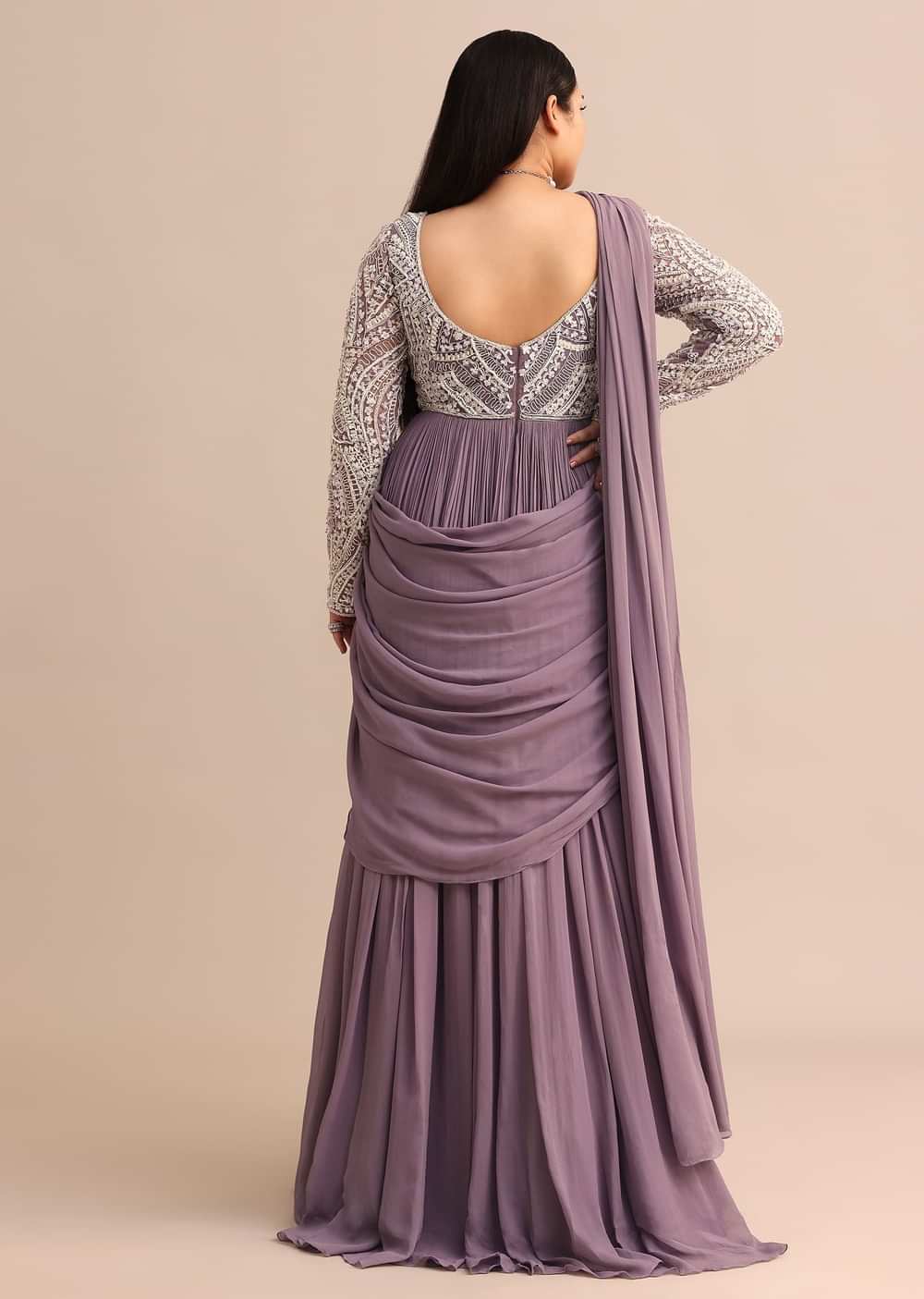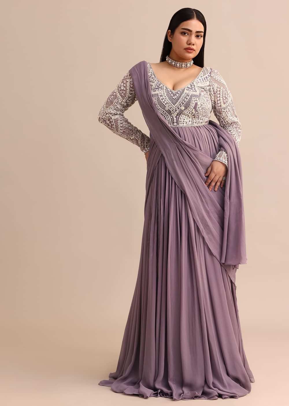 Enter a world of luxury wearing the Pallu Style Draped Purple Anarkali Suit, a majestic look that is sure to win hearts. The suit's bottom has sophisticated ruching, and its... More Product Details