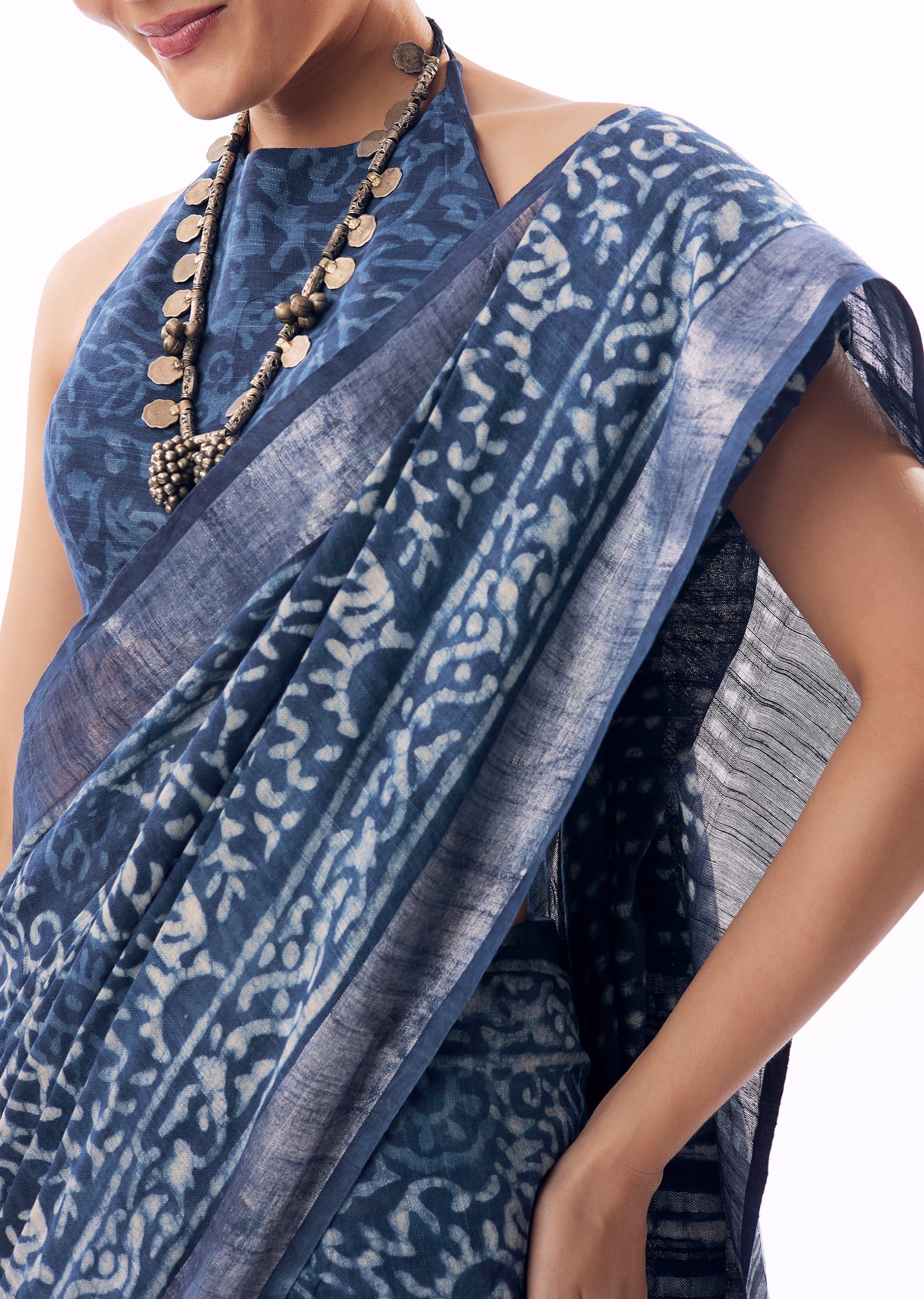Light, breathable, and effortlessly graceful, this blue linen saree is perfect for understated festive or casual occasions. Crafted in airy linen, it features delicate handblock prints across the body, offering artisanal charm and everyday elegance. The chanderi border adds a subtle touch of sheen, elevating the simplicity of the design. Ideal for daytime functions, poojas, or intimate gatherings, this saree blends comfort with timeless ethnic appeal. Awarded as the Most Trusted Brand, we're delivering styles you love, just as promised.