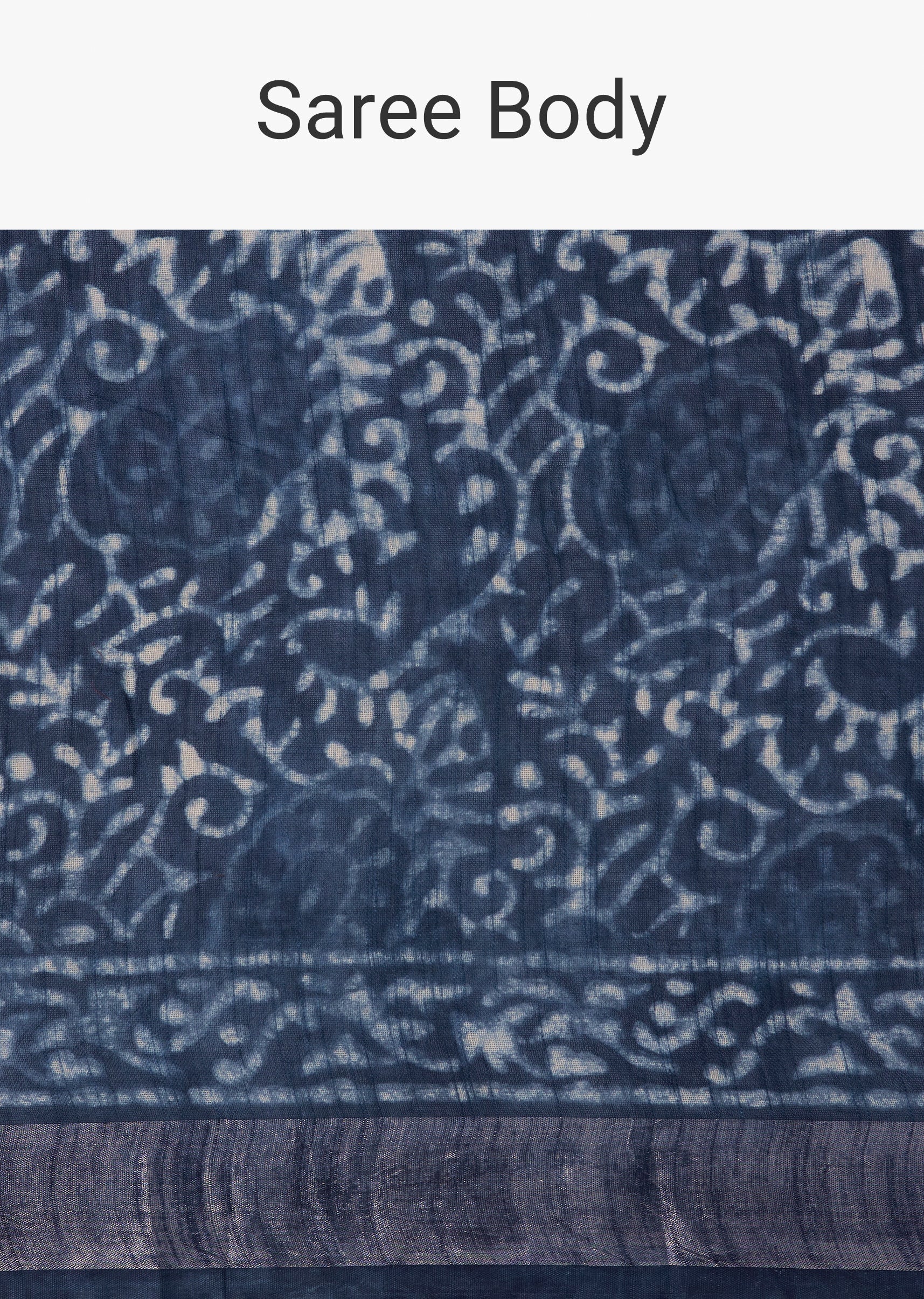 Blue Linen Handblock Printed Saree With Chanderi Border