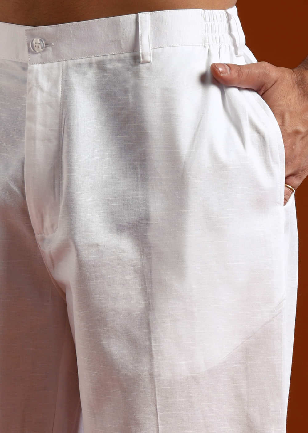 For a clear, simple statement, this blue linen men’s kurta set uses fine thread work to outline the collar and placket. The colour holds strong from daylight to evening shots.... More Product Details