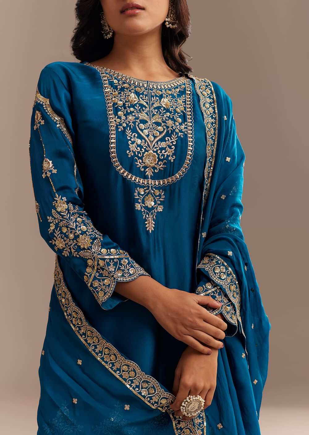 Blue Satin Zari Embroidered Dhoti Kurta Set