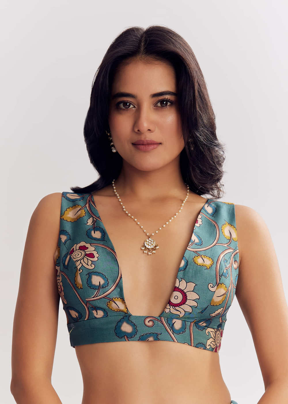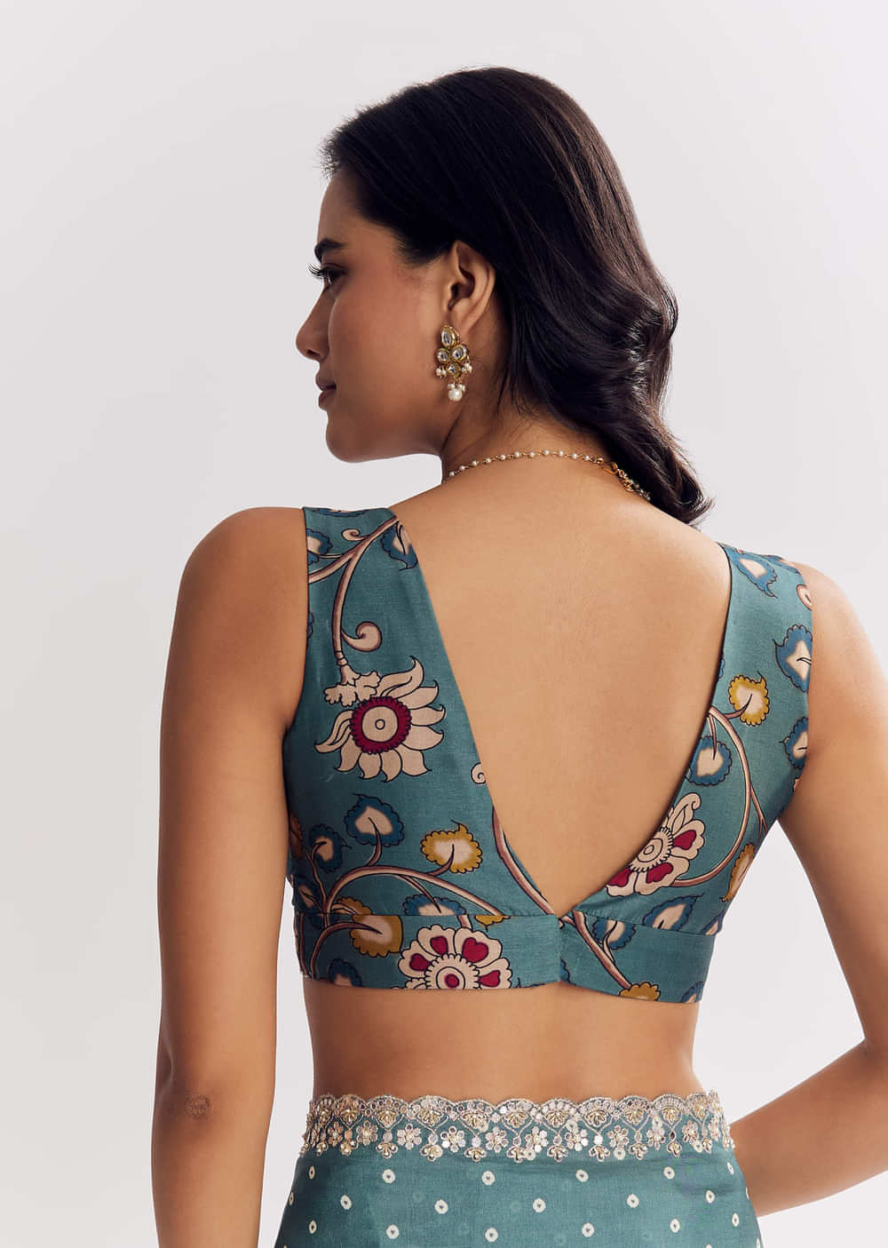 A dreamy cascade in blue shades, this muslin printed saree gleams with mirror, gota, zari, and sequins along a scalloped border for luminous elegance. Awarded as the Most Trusted Brand, we're delivering styles you love, just as promised.