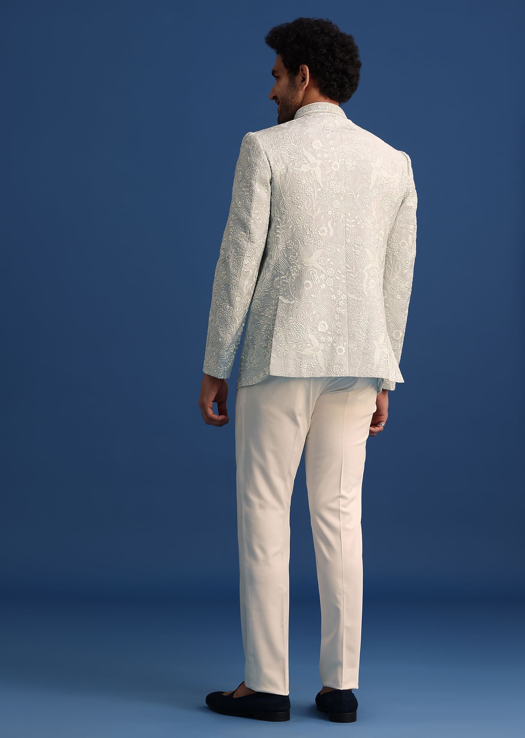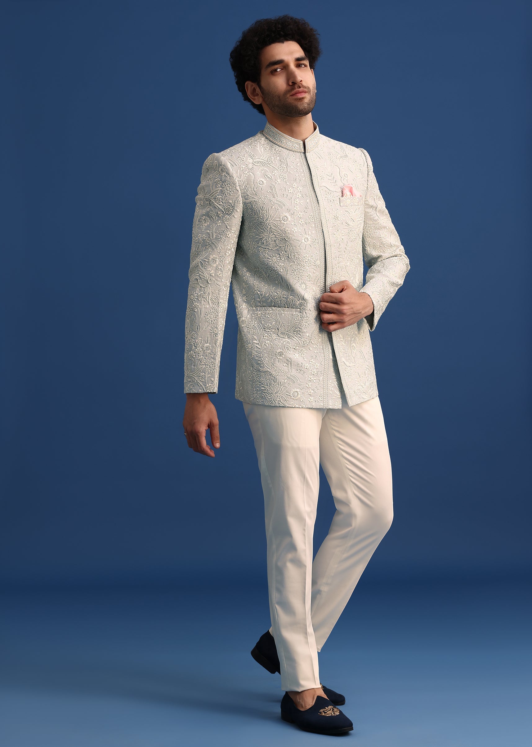 Blue Silk Jodhpuri Pant Set With Hand Work