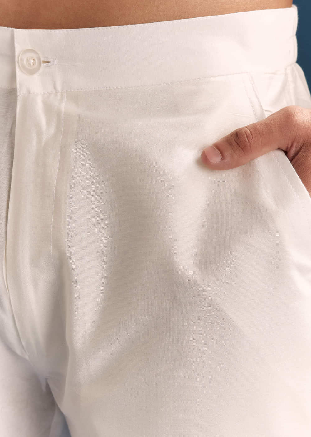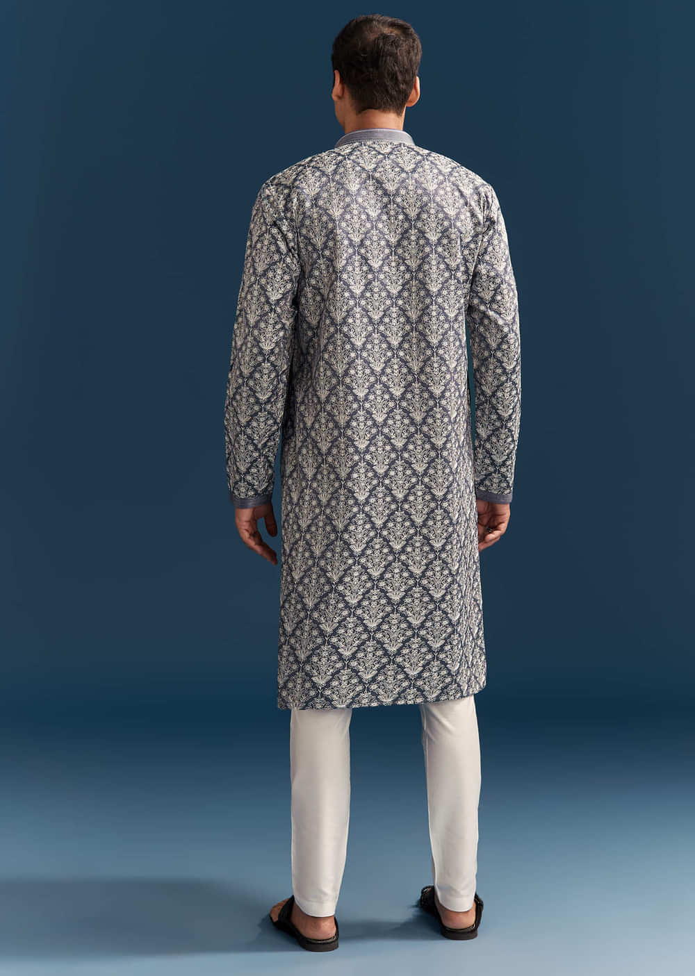 Blue Silk Kurta Set For Men With Thread Embroidery