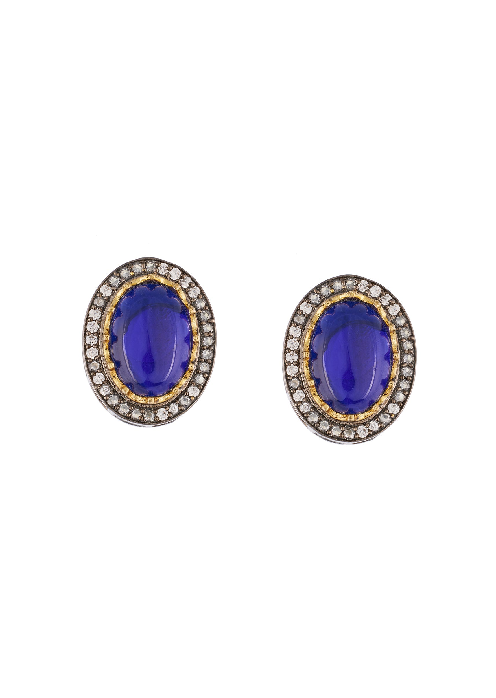 A striking pair of earrings crafted with deep blue and black stones framed by refined diamond inspired detailing. The bold colour pairing and intricate surround work create a sophisticated statement... More Product Details