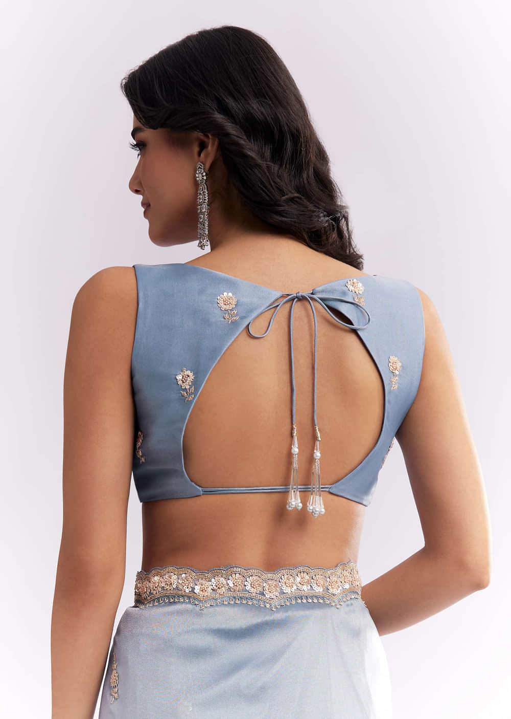 Blue Tissue Silk Saree With Heavy Hand Embroidery