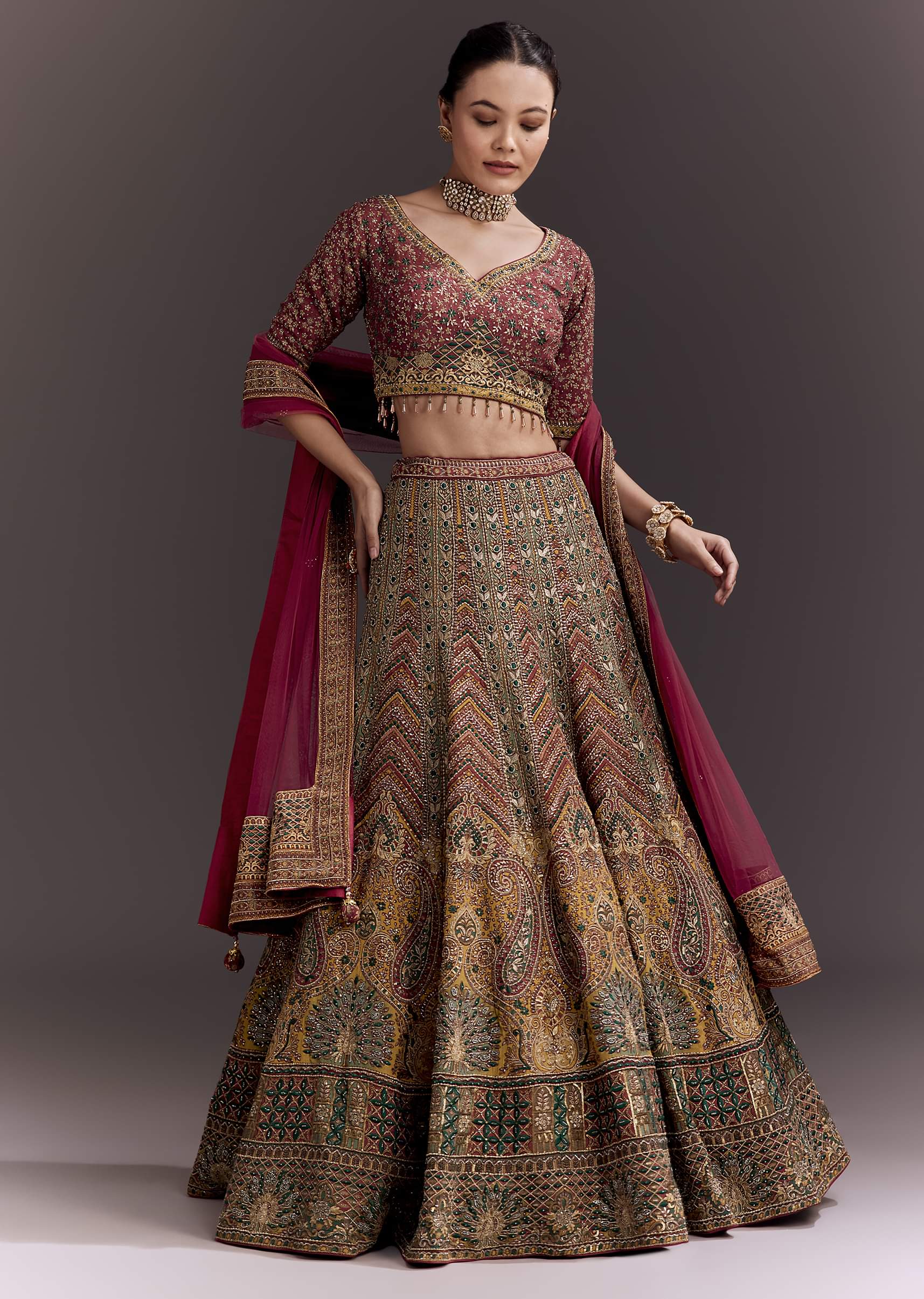 Radiate timeless grace with this brick red lehenga set, beautifully adorned with intricate embroidery and traditional paisley patterns. The rich brick red hue paired with fine resham work and delicate embellishments makes it an ideal choice for weddings, receptions, and sangeet ceremonies. The intricately detailed blouse and the complementing dupatta with embroidered borders lend a regal and ethereal charm to the ensemble. Designed for the modern bridesmaid, this lehenga perfectly balances traditional aesthetics with contemporary elegance. Awarded as the Most Trusted Brand, we're delivering styles you love, just as promised.