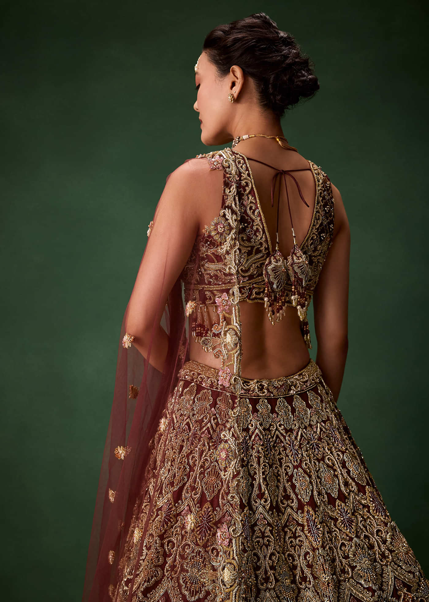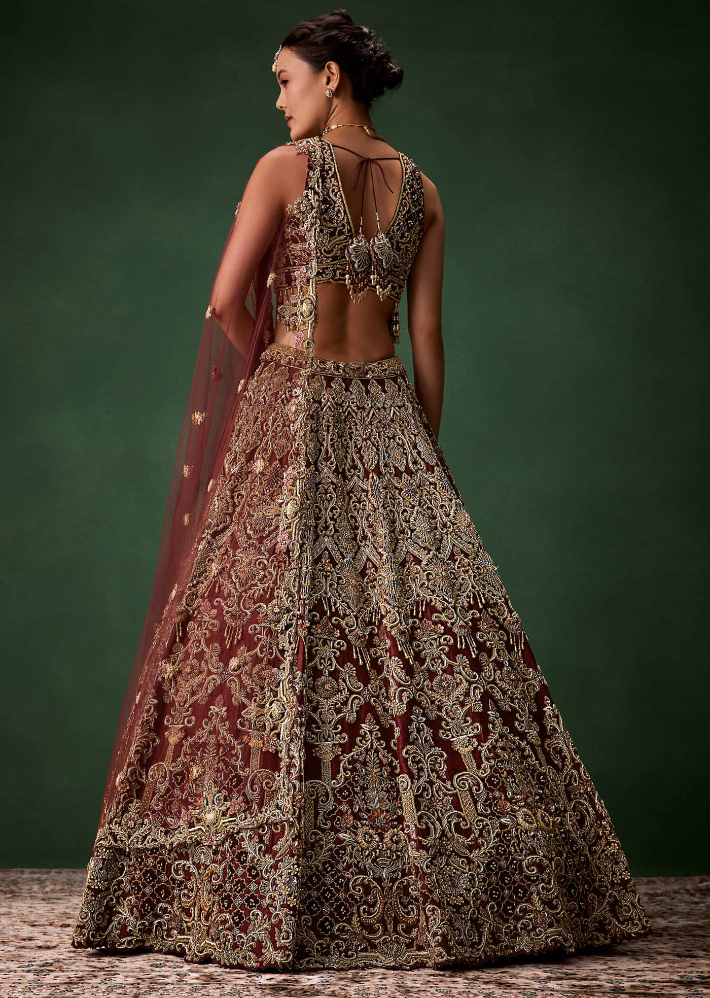 Crafted for the bride who appreciates heritage with a refined modern touch, this bridal lehenga set showcases exquisite embellishment across its lustrous canvas. The intricate artisanal work adds dimensional richness,... More Product Details