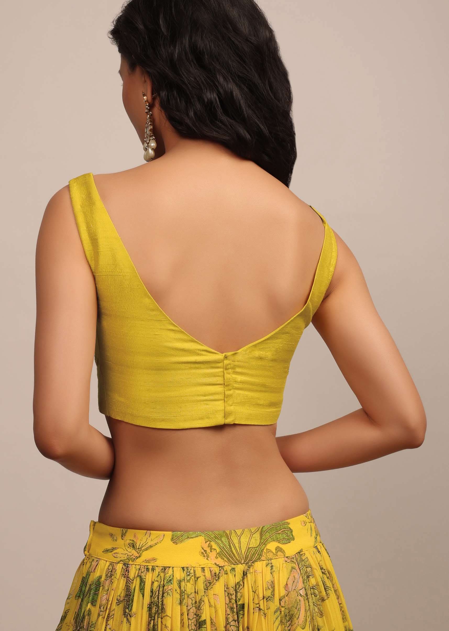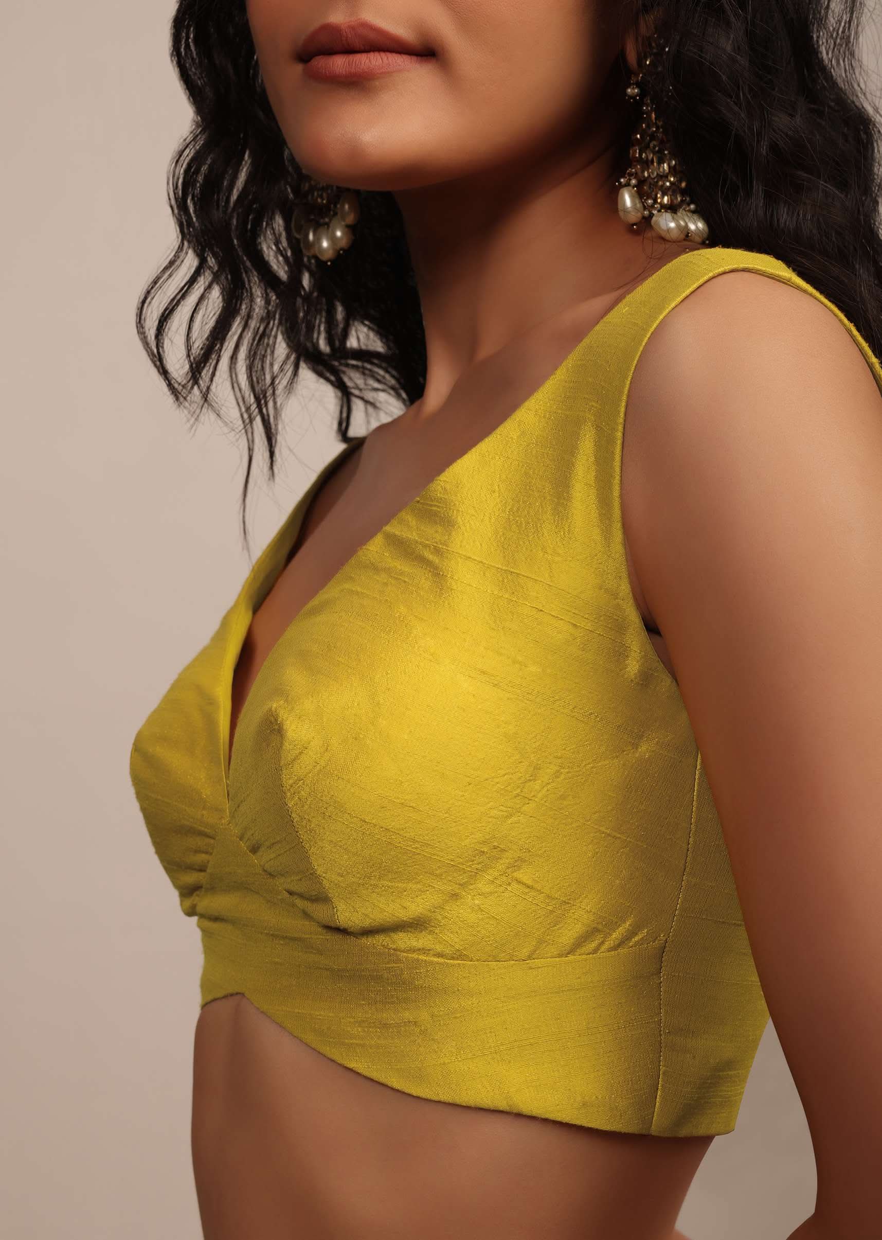 Bright Yellow Sleeveless Blouse With Sweetheart Neckline In Raw Silk