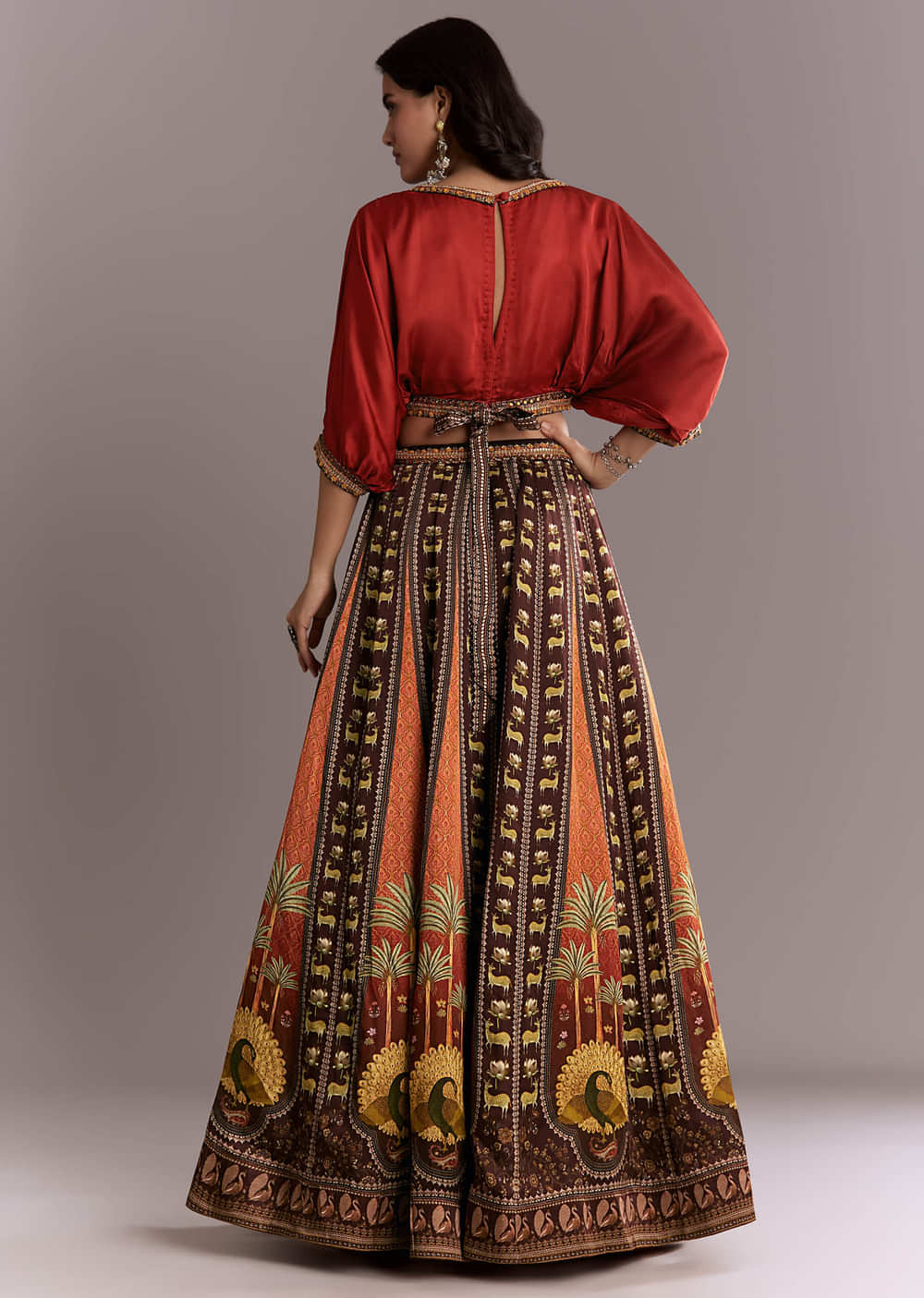 Minimal and modern, this brown crepe crop top and printed skirt set leans on clean lines and a breezy skirt for all-day comfort. The print adds interest while keeping styling simple for quick plans. You feel relaxed, polished and ready for festive and mehendi. Awarded as the Most Trusted Brand, we're delivering styles you love, just as promised.