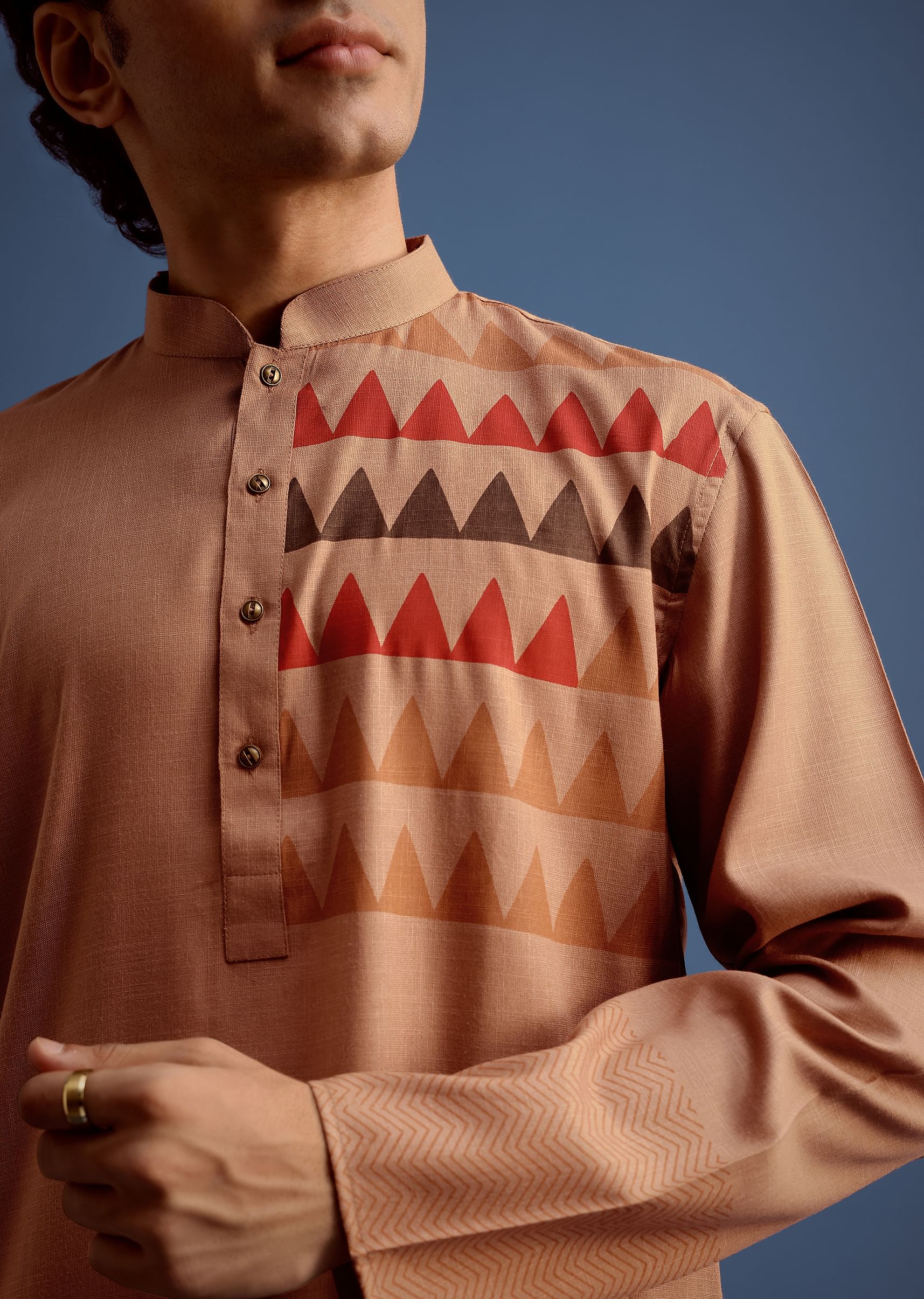 - Immerse yourself in the timeless elegance of Indian craftsmanship with our exquisite brown hand block printed kurta set.