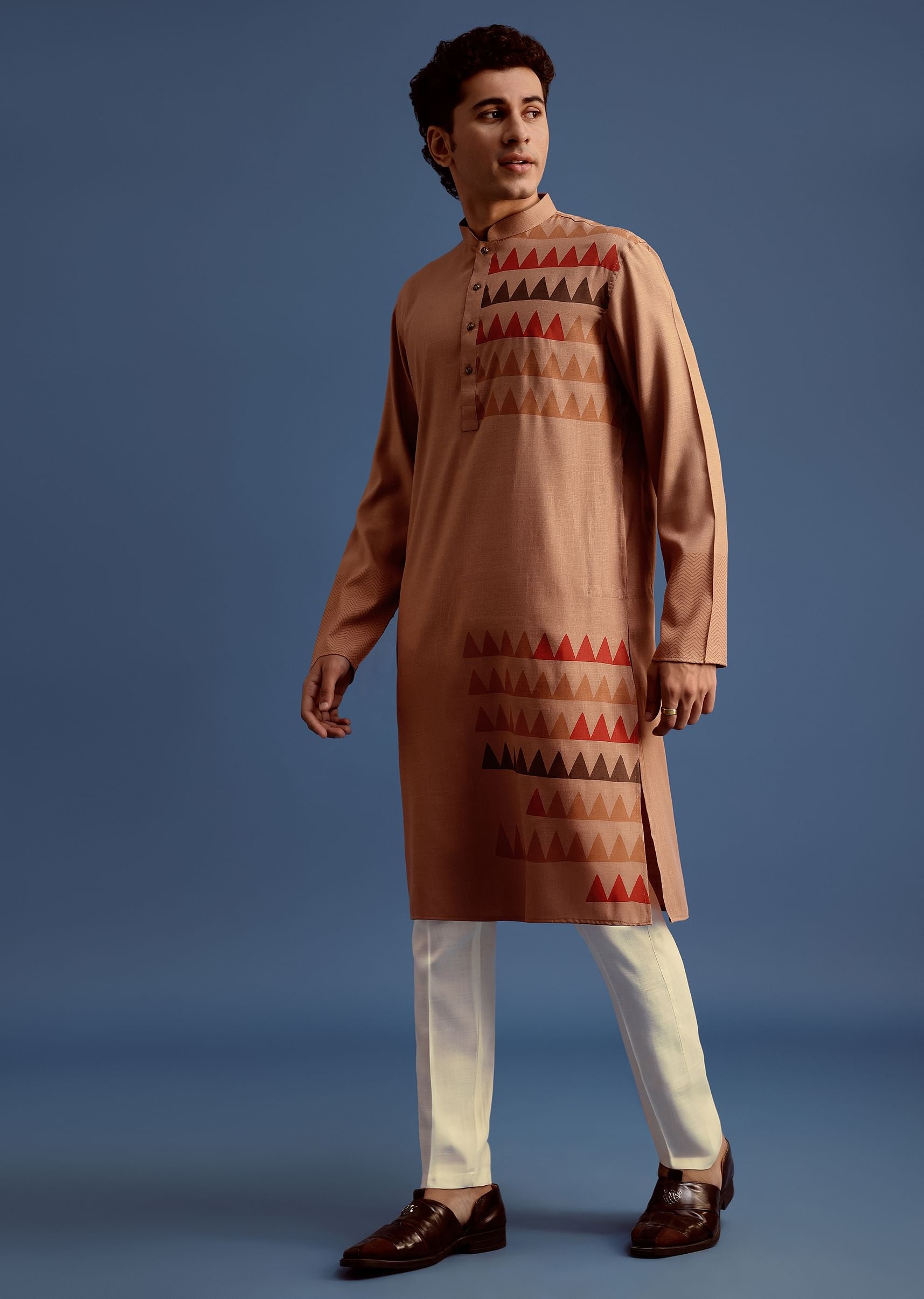 Brown Geometric Hand Block Printed Kurta Set