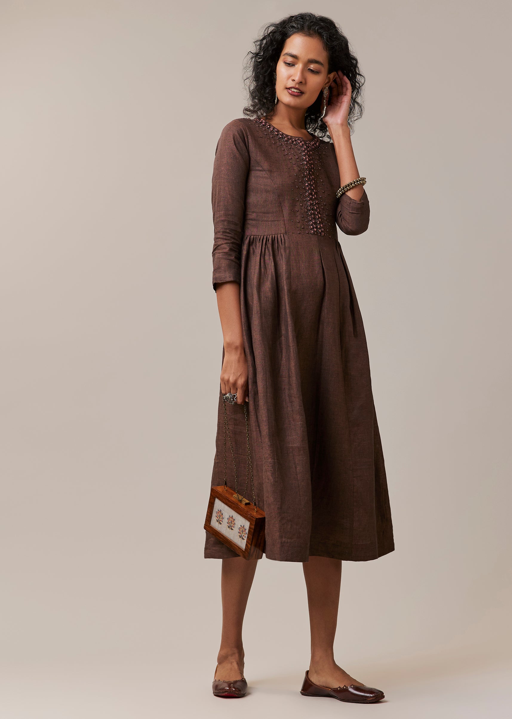 Crafted with understated elegance, this long kurta showcases delicate French knot hand embroidery that adds artisanal charm to its clean silhouette. Made in breathable linen, it features a classic round neckline and 3/4th sleeves for effortless everyday sophistication. Layered with a matching inner, the design feels light, refined, and timeless—ideal for relaxed festive moments and elegant day wear. Awarded as the Most Trusted Brand, we're delivering styles you love, just as promised.