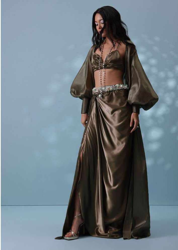 - This opulent ensemble is a celebration of elegance and sophistication.