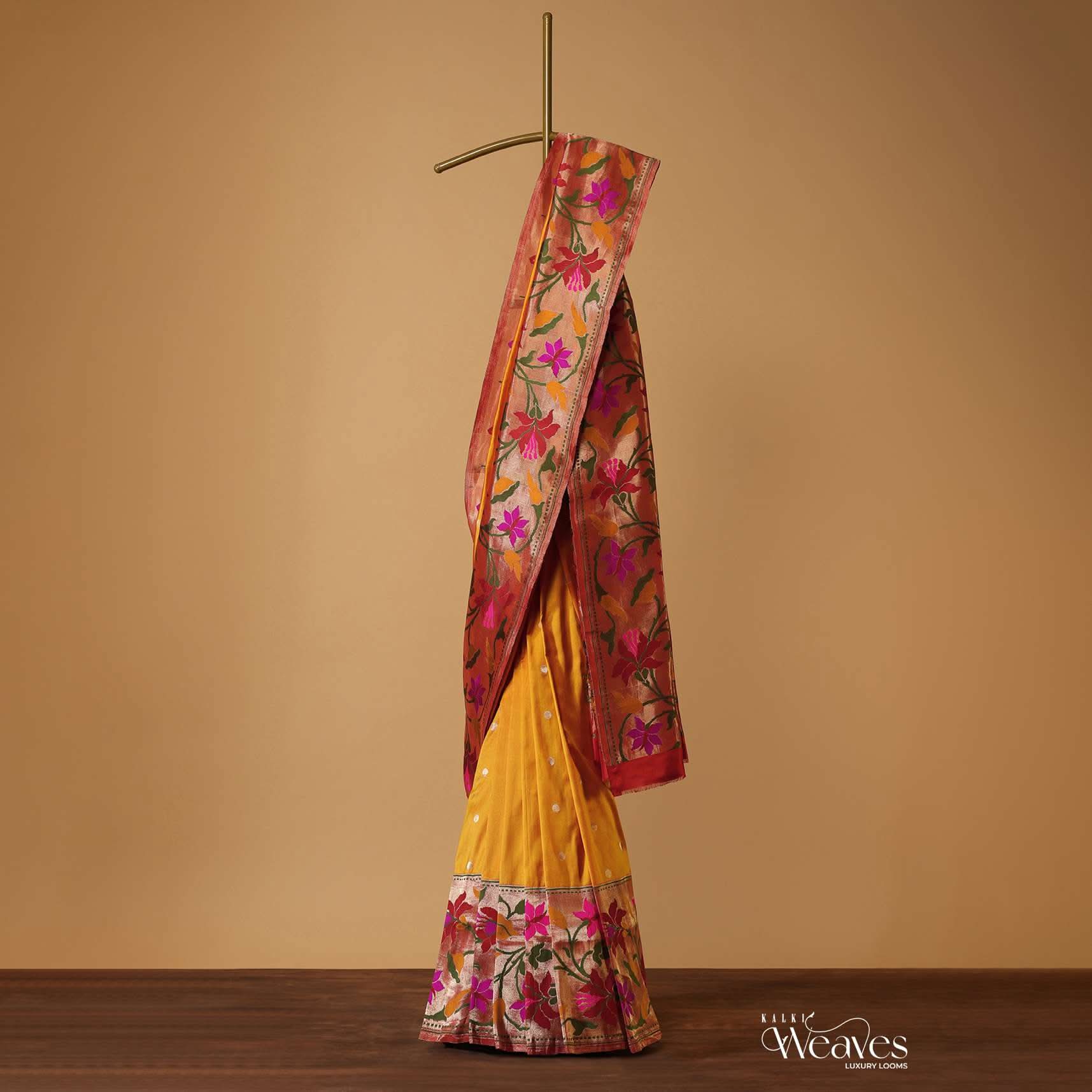 - Banarasi handloom saree with paithani border in pure uppada silk.