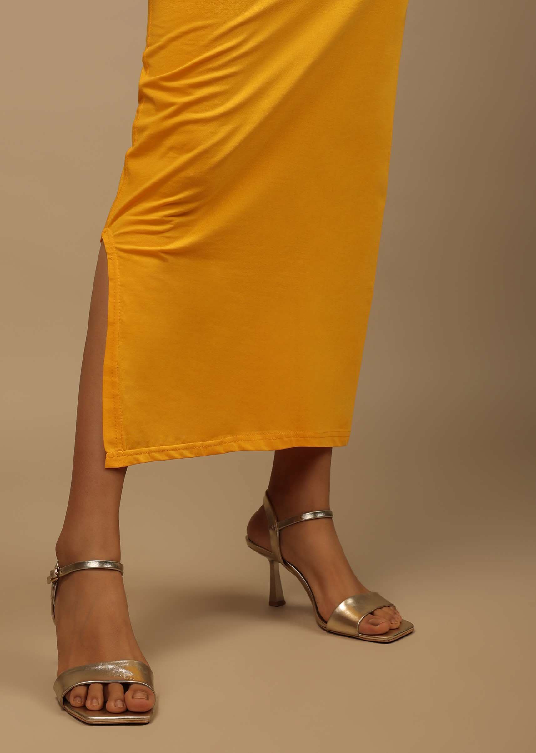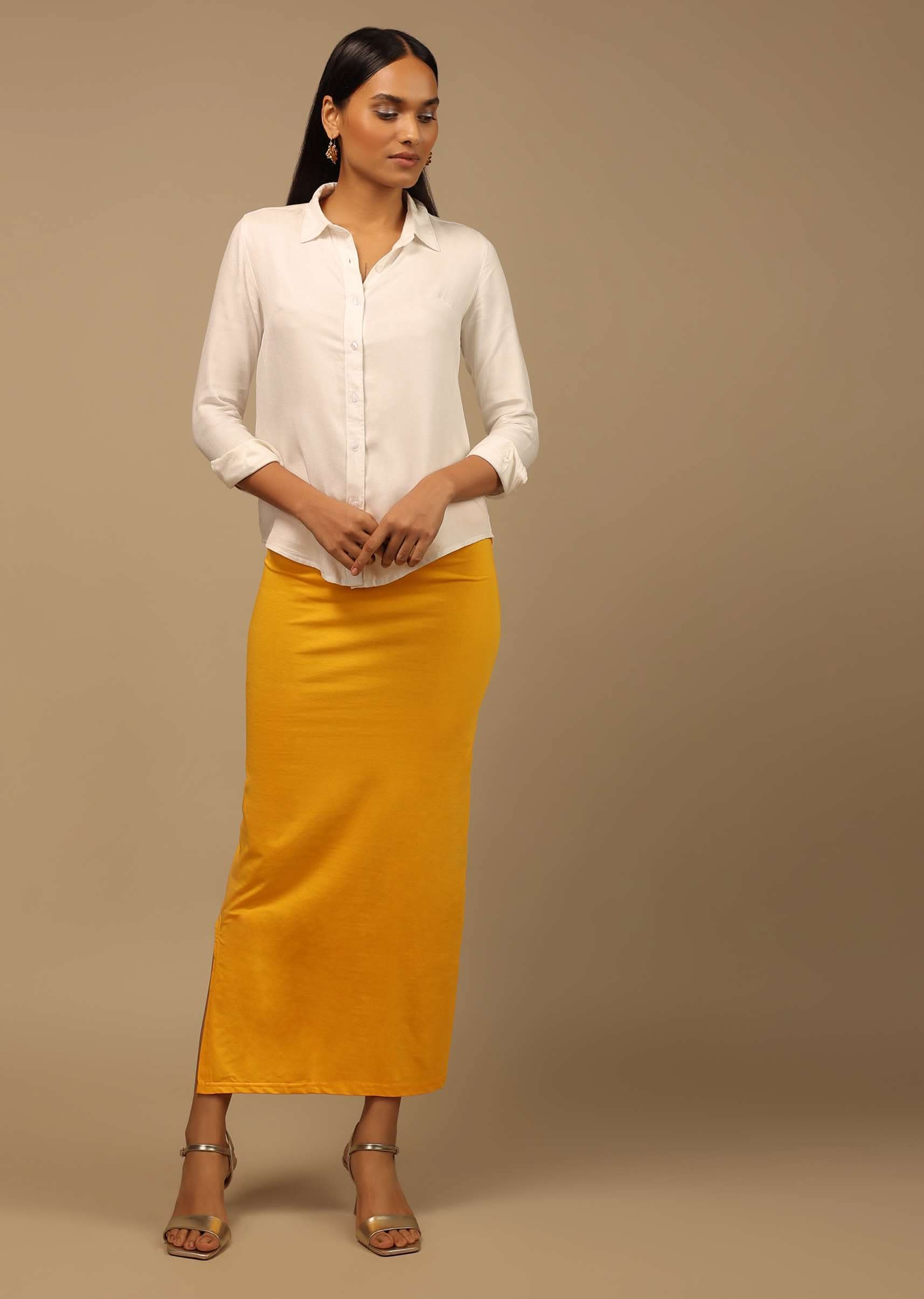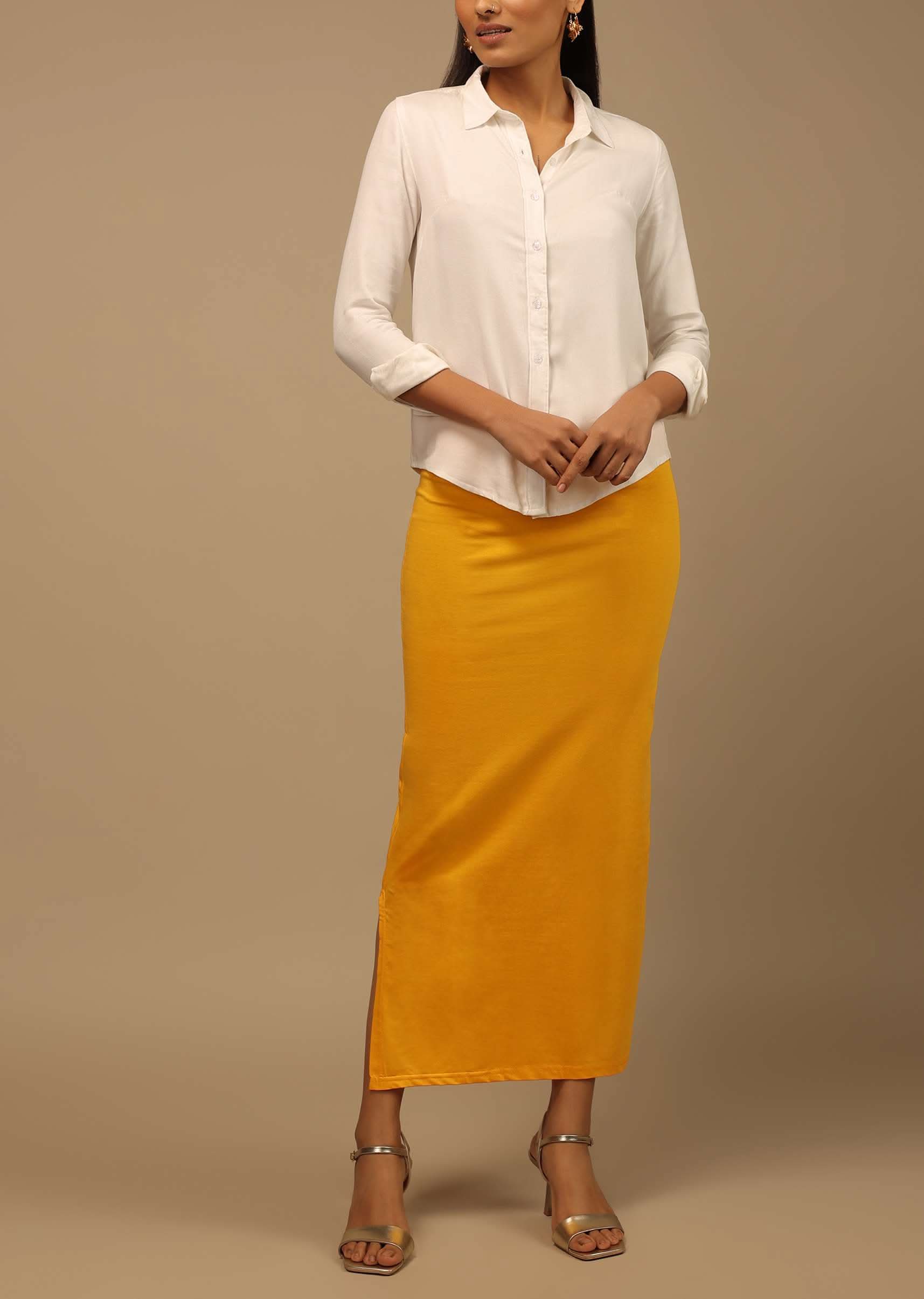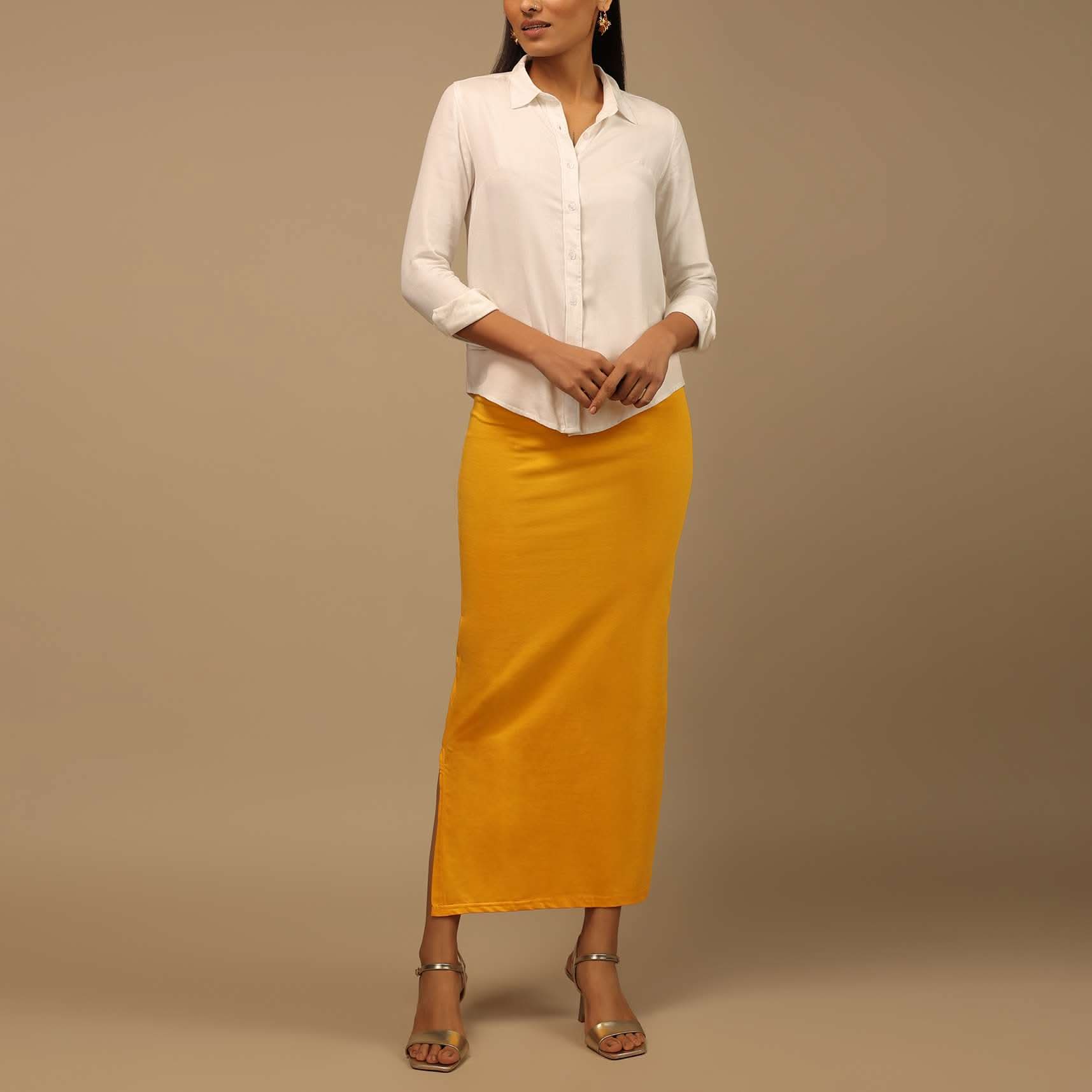 Chrome Yellow Shapewear Saree Petticoat In Cotton Lycra With Elastic Waistband And Slit