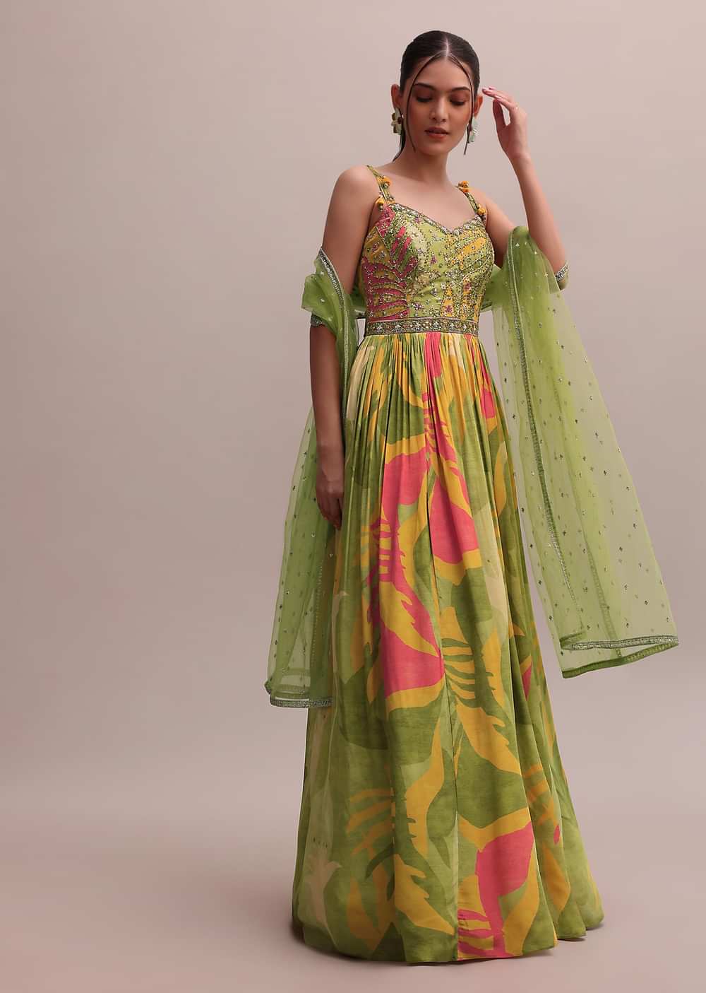 - Elevate your festive look with our Green Crepe Anarkali Set.