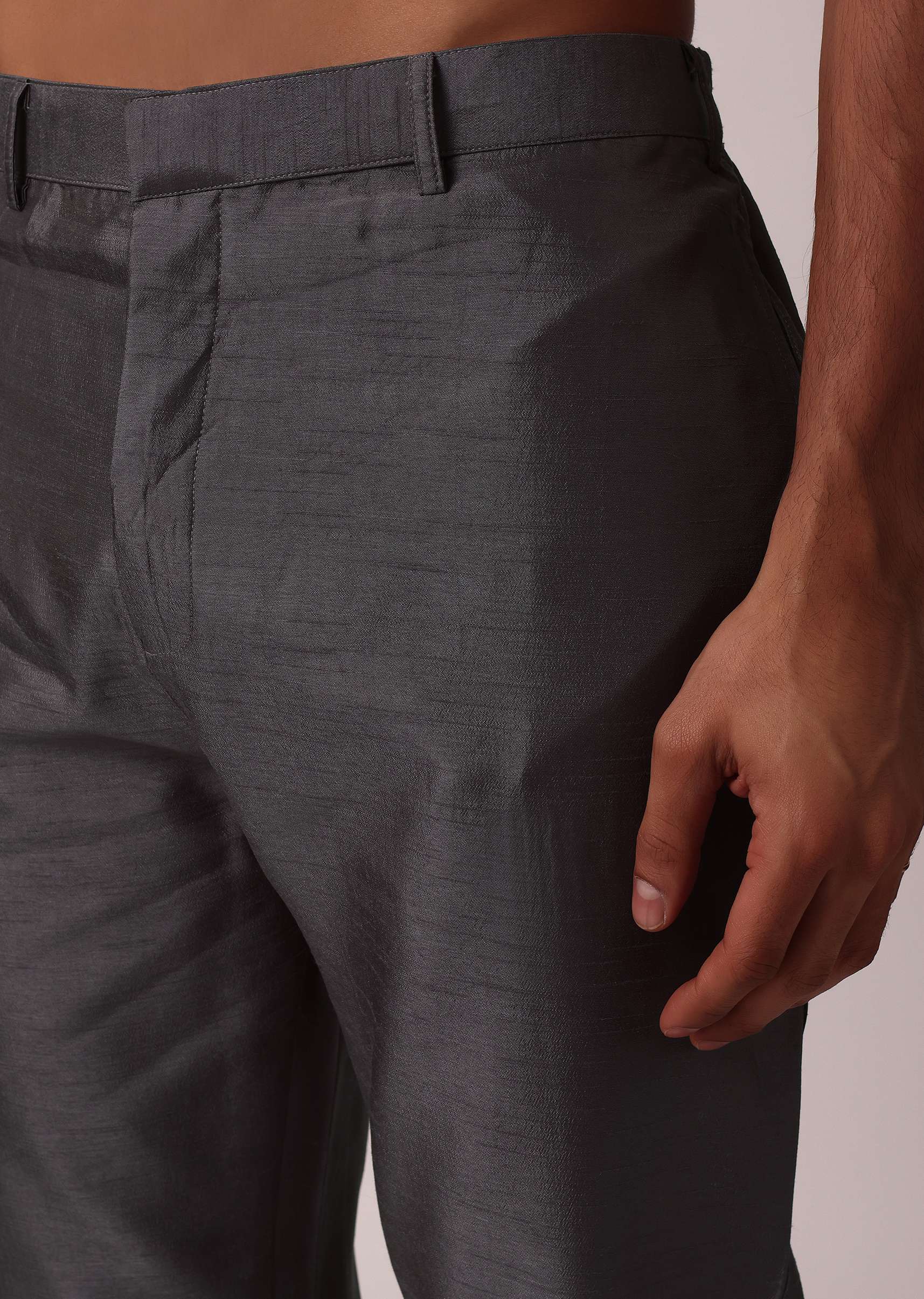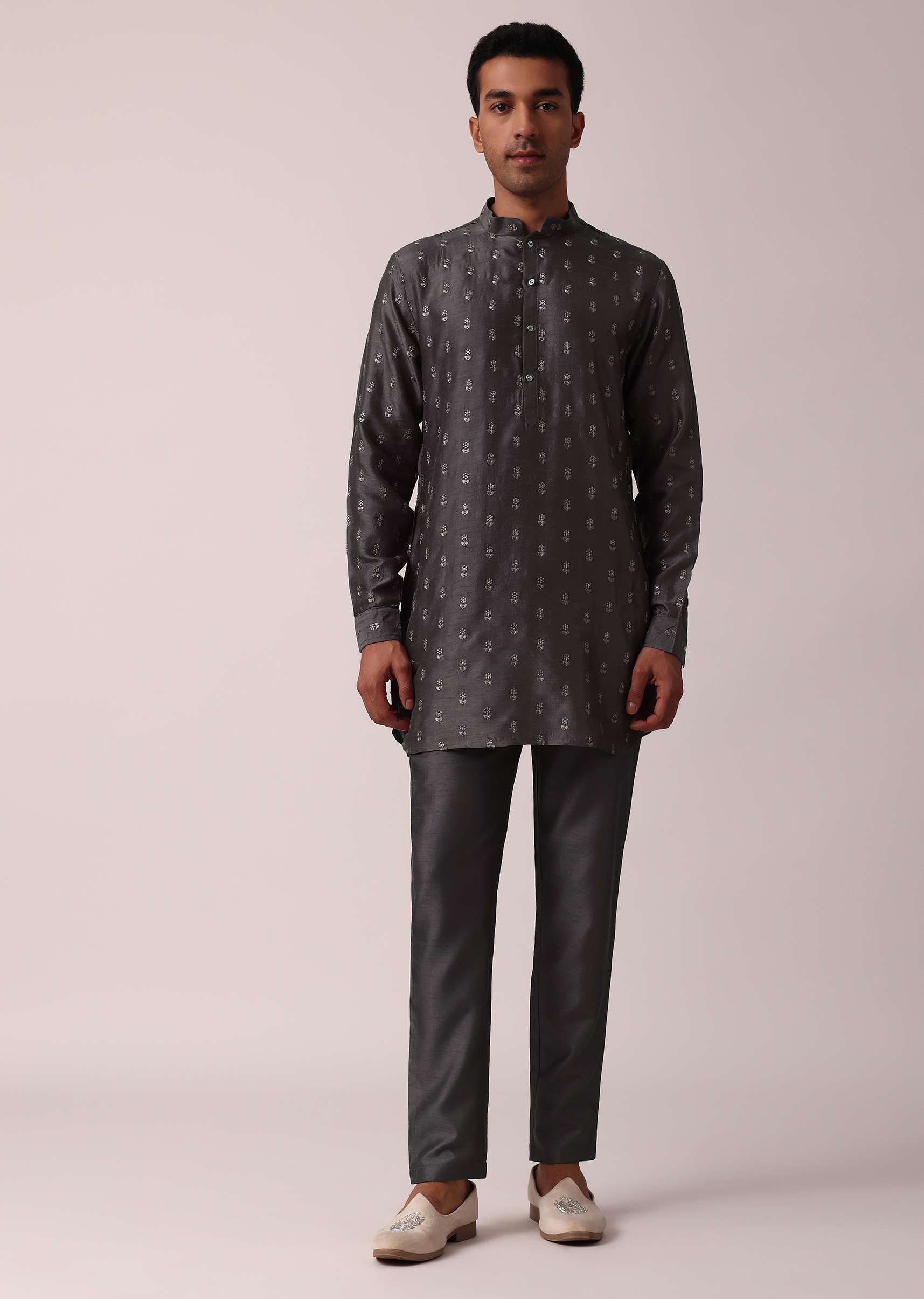 - Transform your festive wardrobe with our Classic Grey Silk Embroidered Jacket Kurta Set.