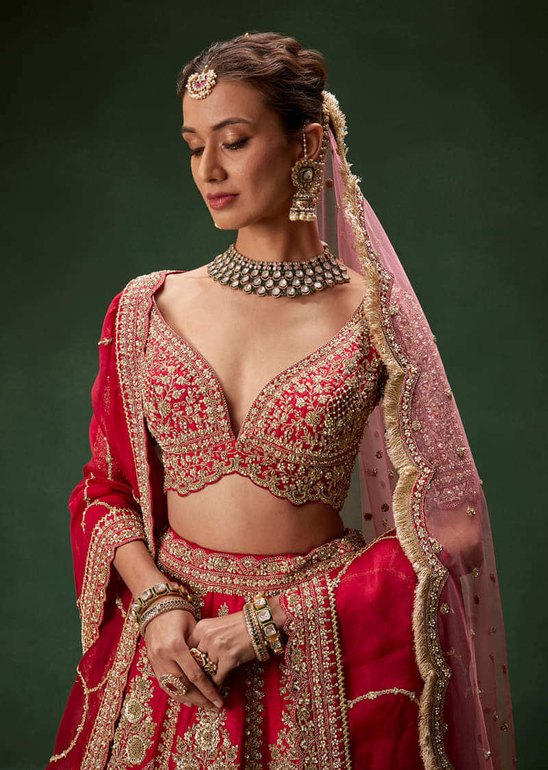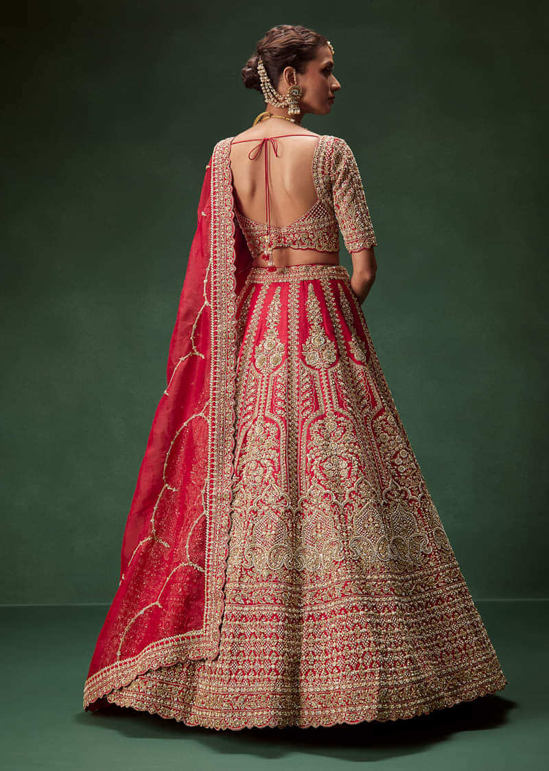 Classic Red Bridal Lehenga With All Over Zari And Dori Embroidery