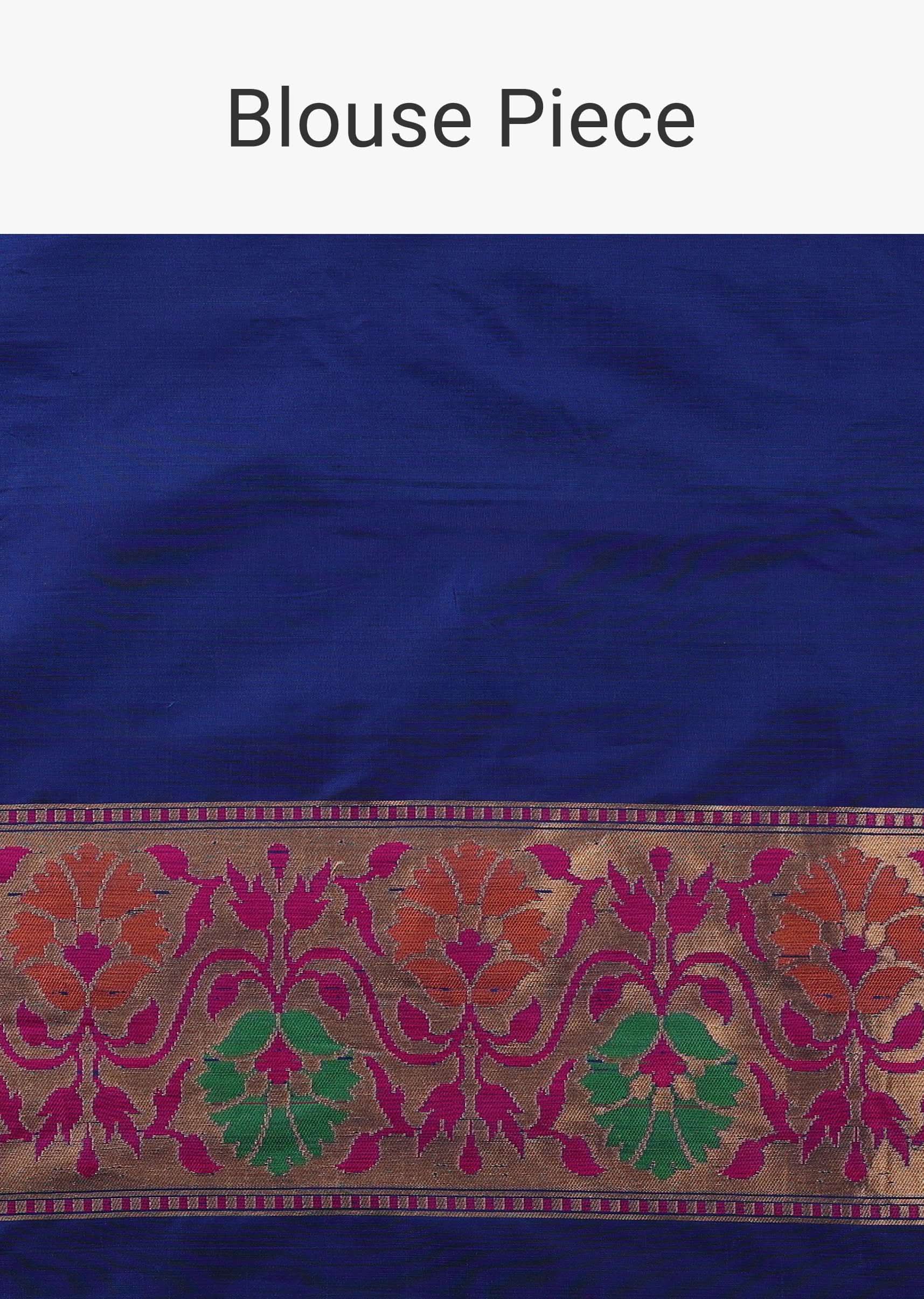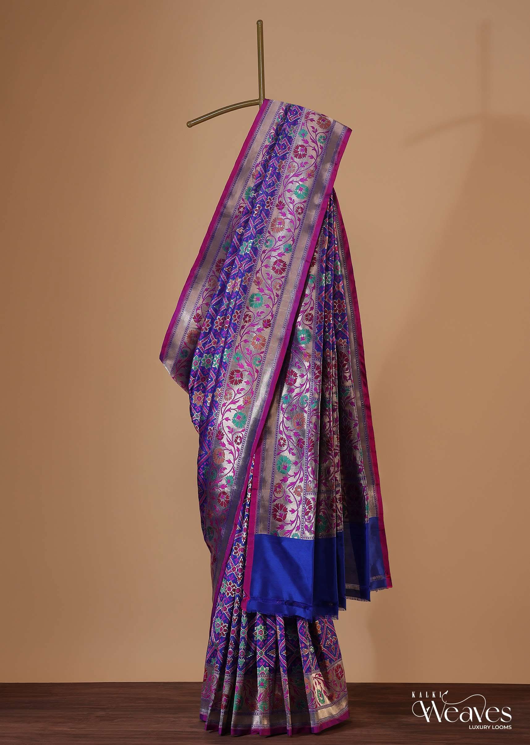 Cobalt Blue Banarasi Patola Saree In Katan Silk With Ikat Weave And Unstitched Blouse