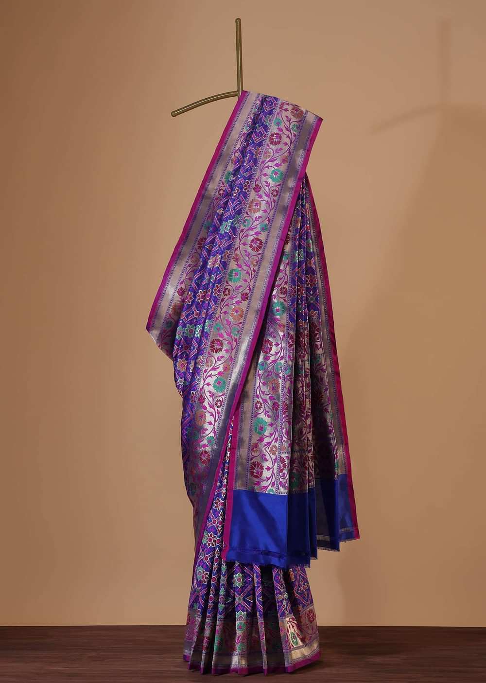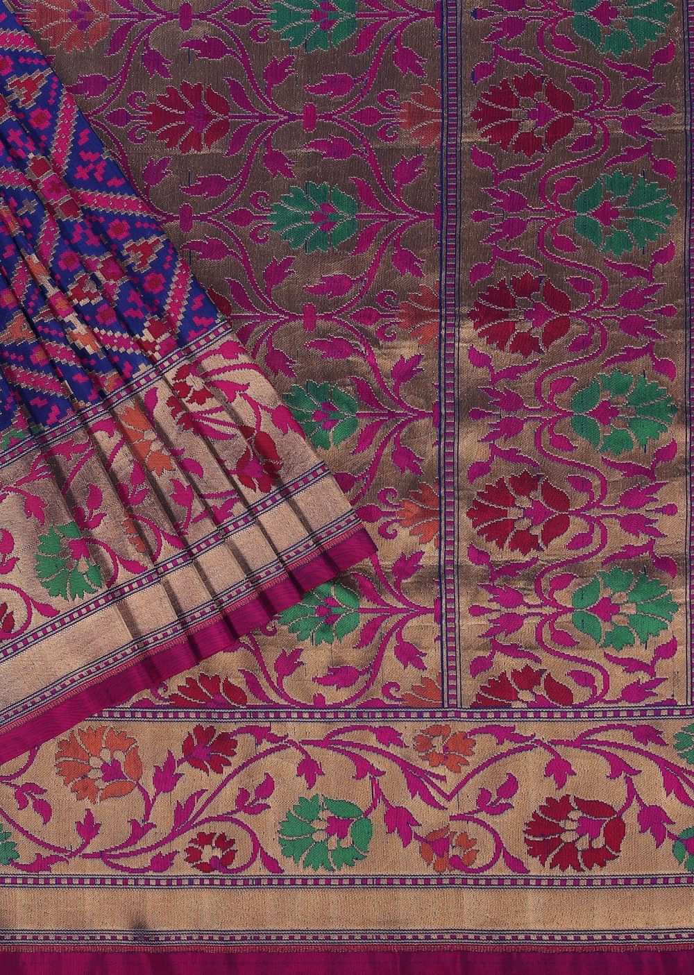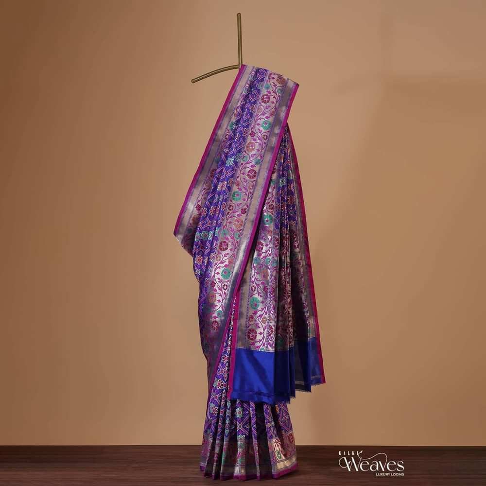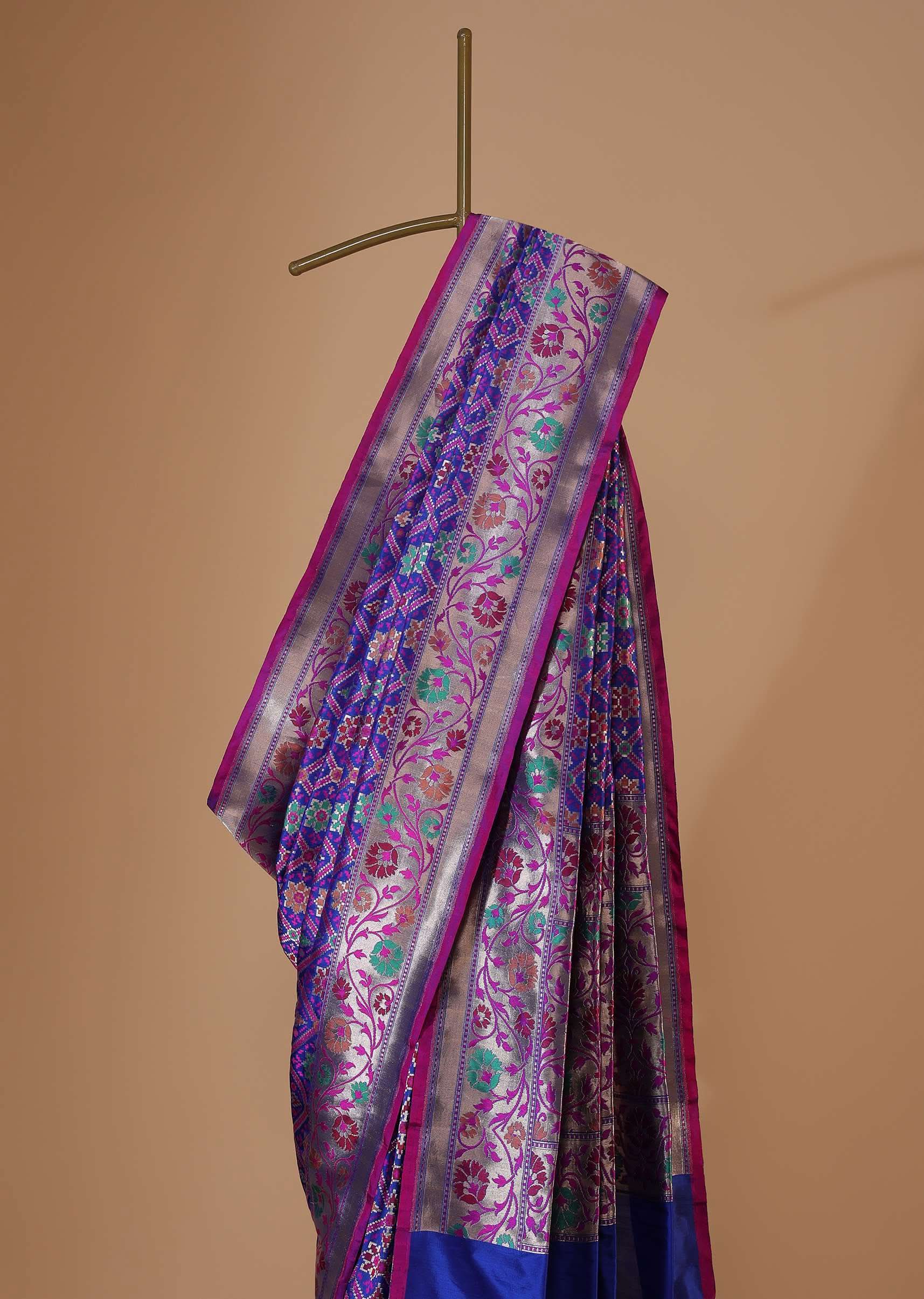 - Our blue banarasi patola saree in katan silk with ikat weave and resham work.