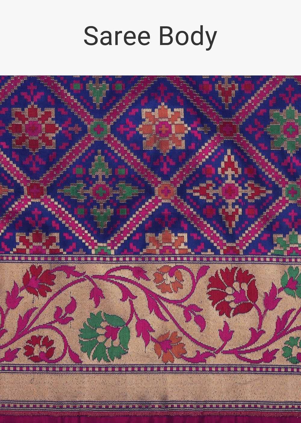 - Our blue banarasi patola saree in katan silk with ikat weave and resham... More Product Details