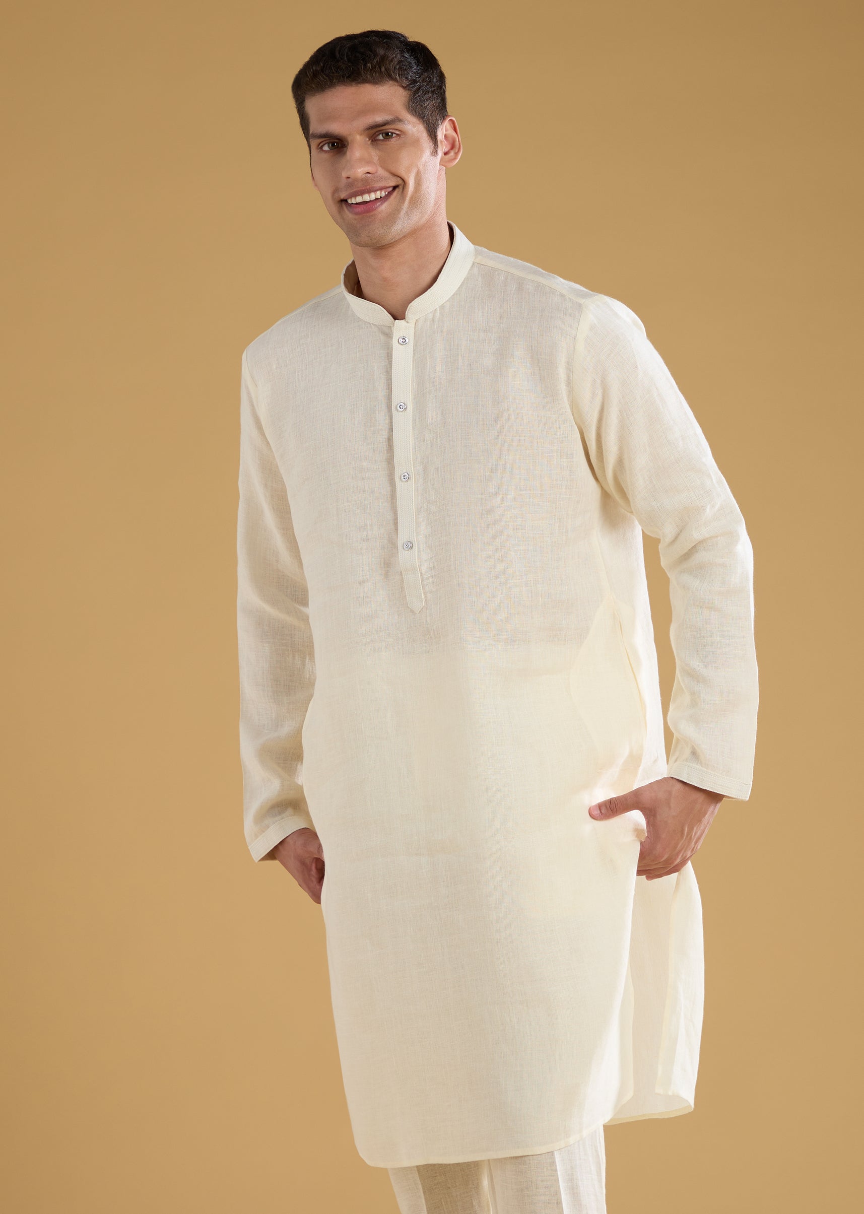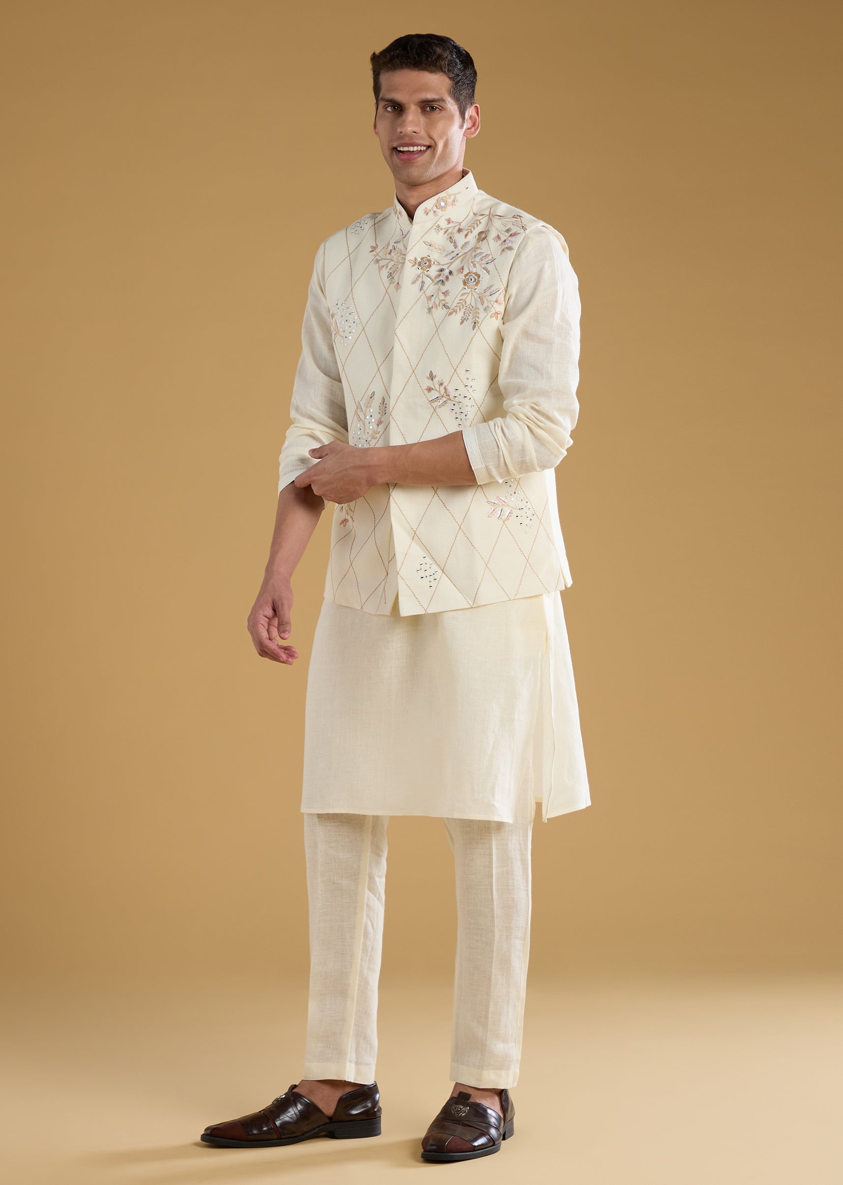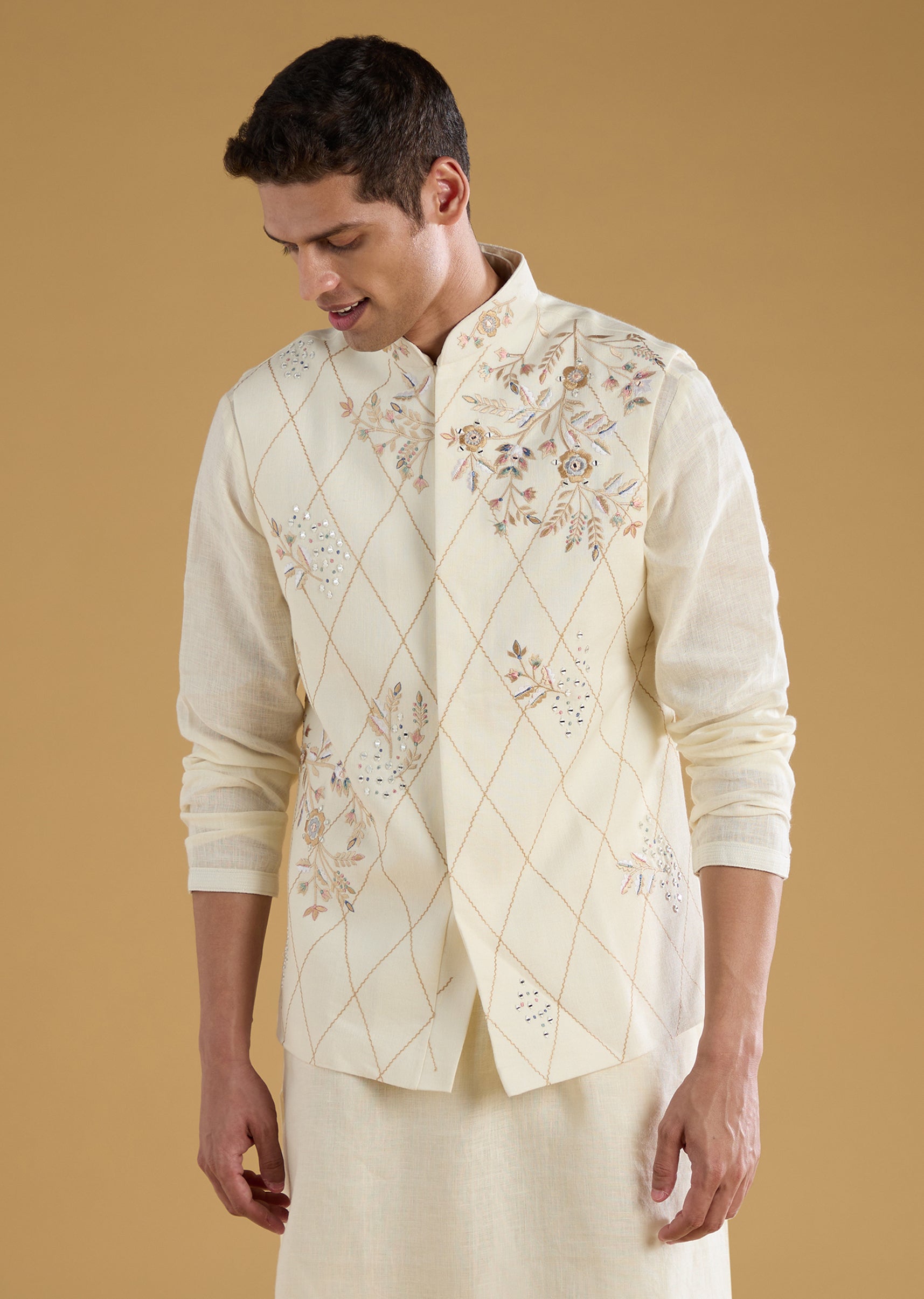 Cream Art Silk Embroidered Jacket and Kurta Set