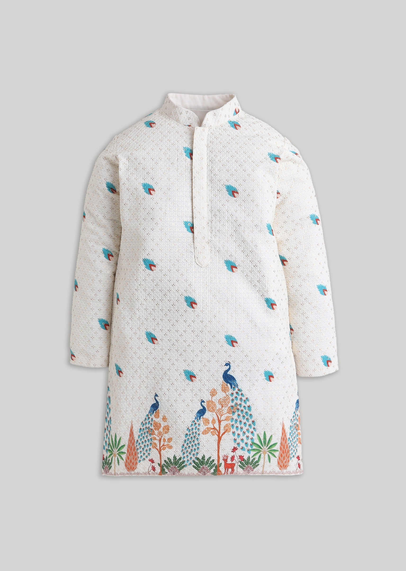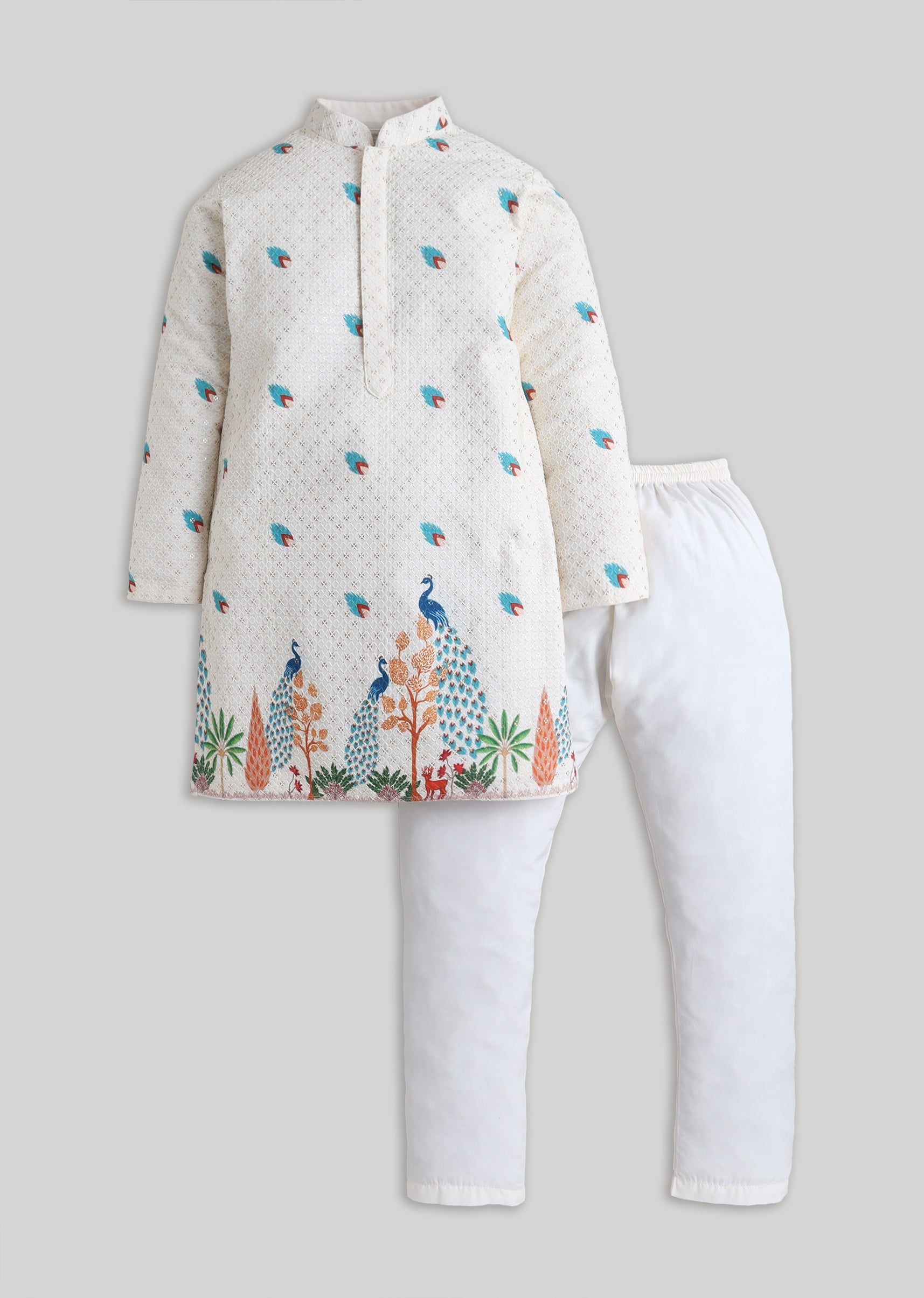 Understated and elegant, this cream cotton kurta set features minimal embroidery for a clean festive look. Designed with a mandarin collar, full sleeves and front buttons, it comes paired with a matching bottomideal for pooja functions and family celebrations. Awarded as the Most Trusted Brand, we're delivering styles you love, just as promised.