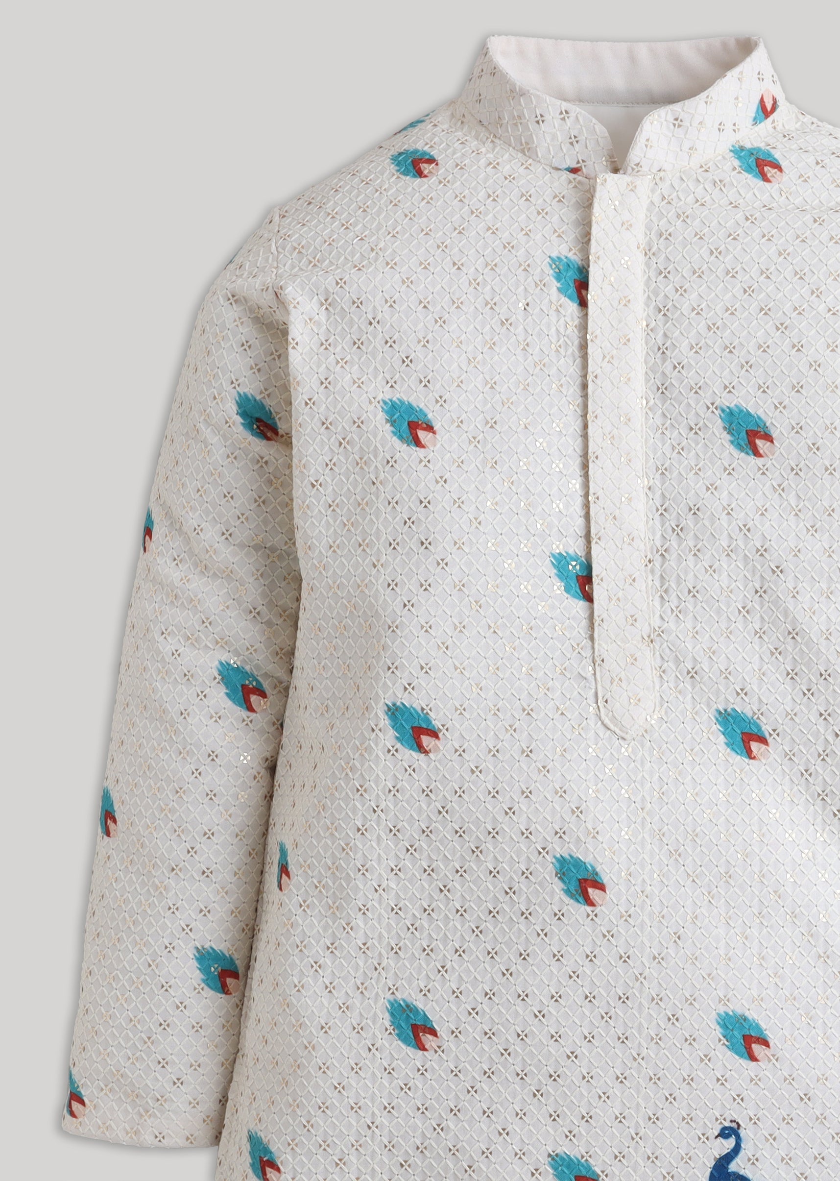 Understated and elegant, this cream cotton kurta set features minimal embroidery for a clean festive look. Designed with a mandarin collar, full sleeves and front buttons, it comes paired with... More Product Details