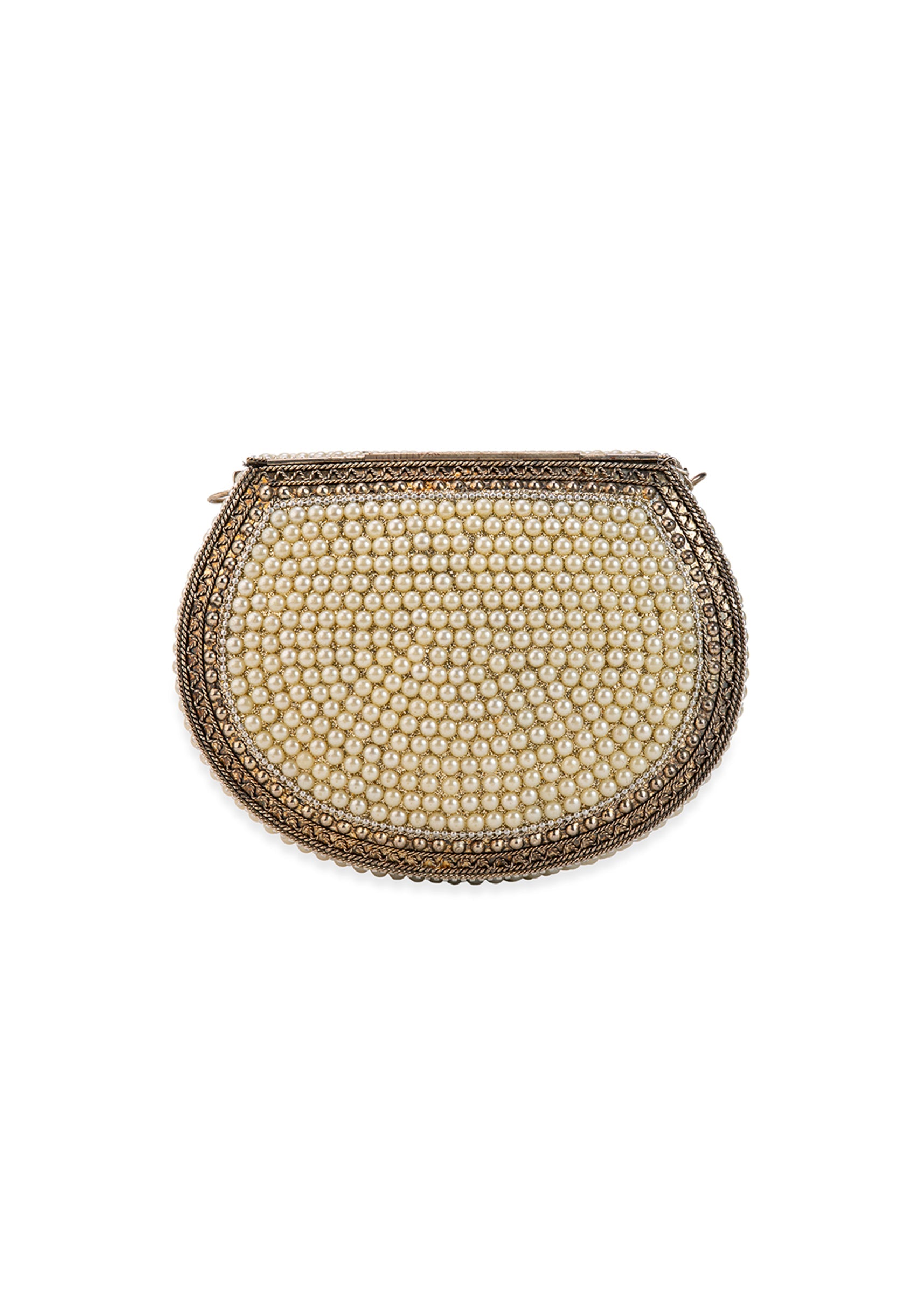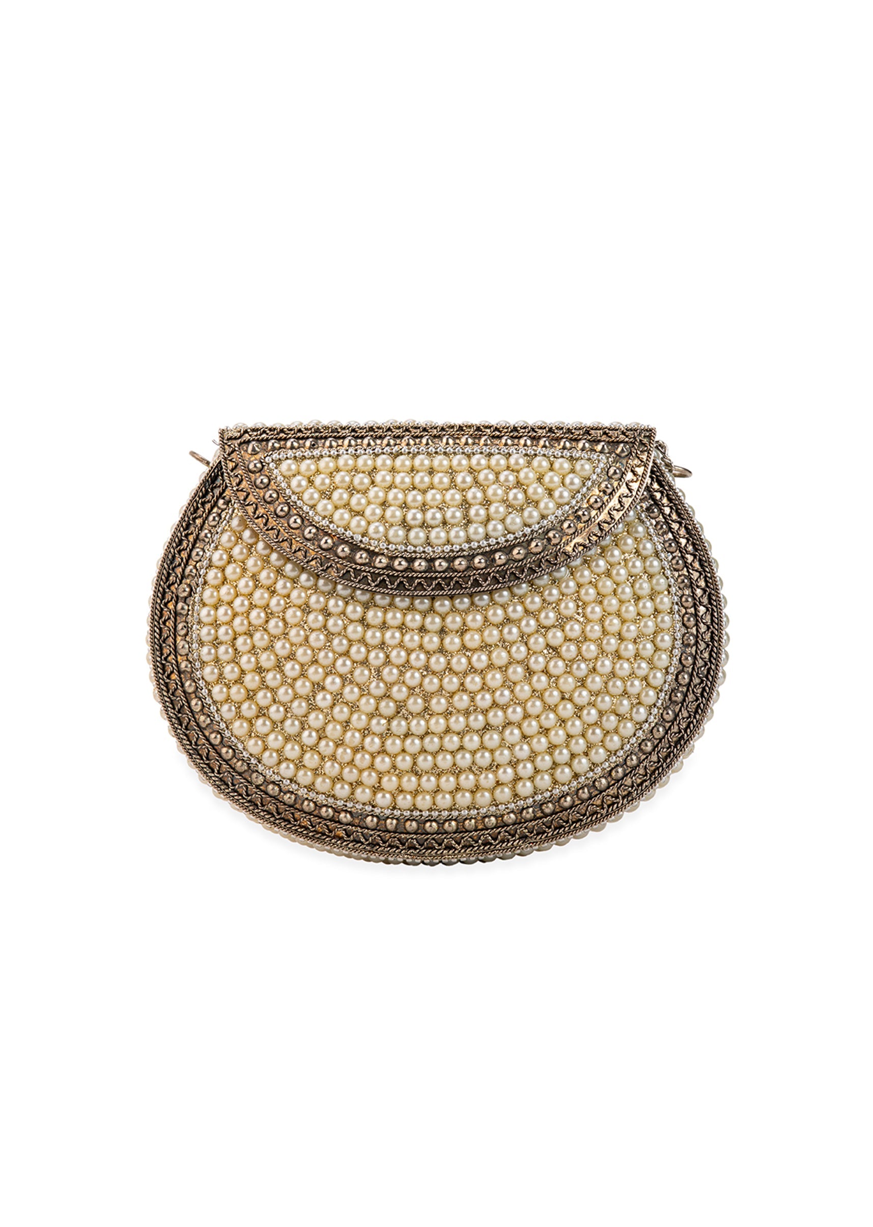 Elevate your look with this cream and silver bag, adorned with vintage silver detailing and intricate metal bead embellishments. Its timeless charm and soft shimmer make it perfect for festive evenings, weddings, and elegant celebrations. Compact yet captivating, it adds a refined, old-world sparkle to any ensemble. Awarded as the Most Trusted Brand, we're delivering styles you love, just as promised.