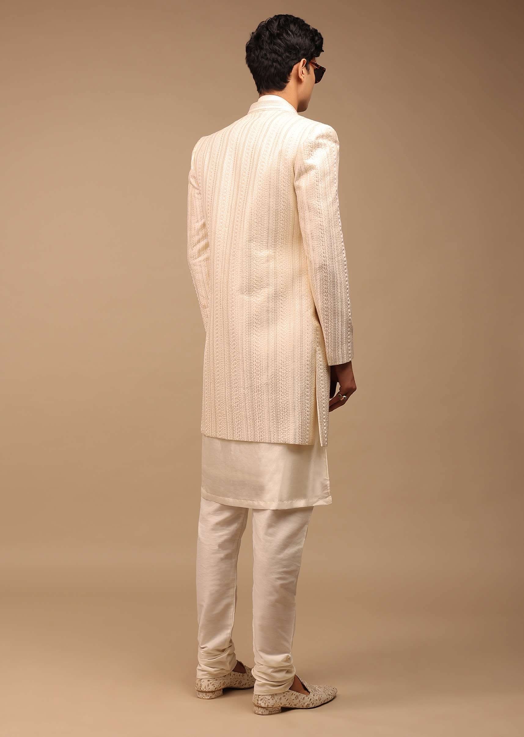 - This cream sherwani is a must-have for every wardrobe that searches for traditional quirks.