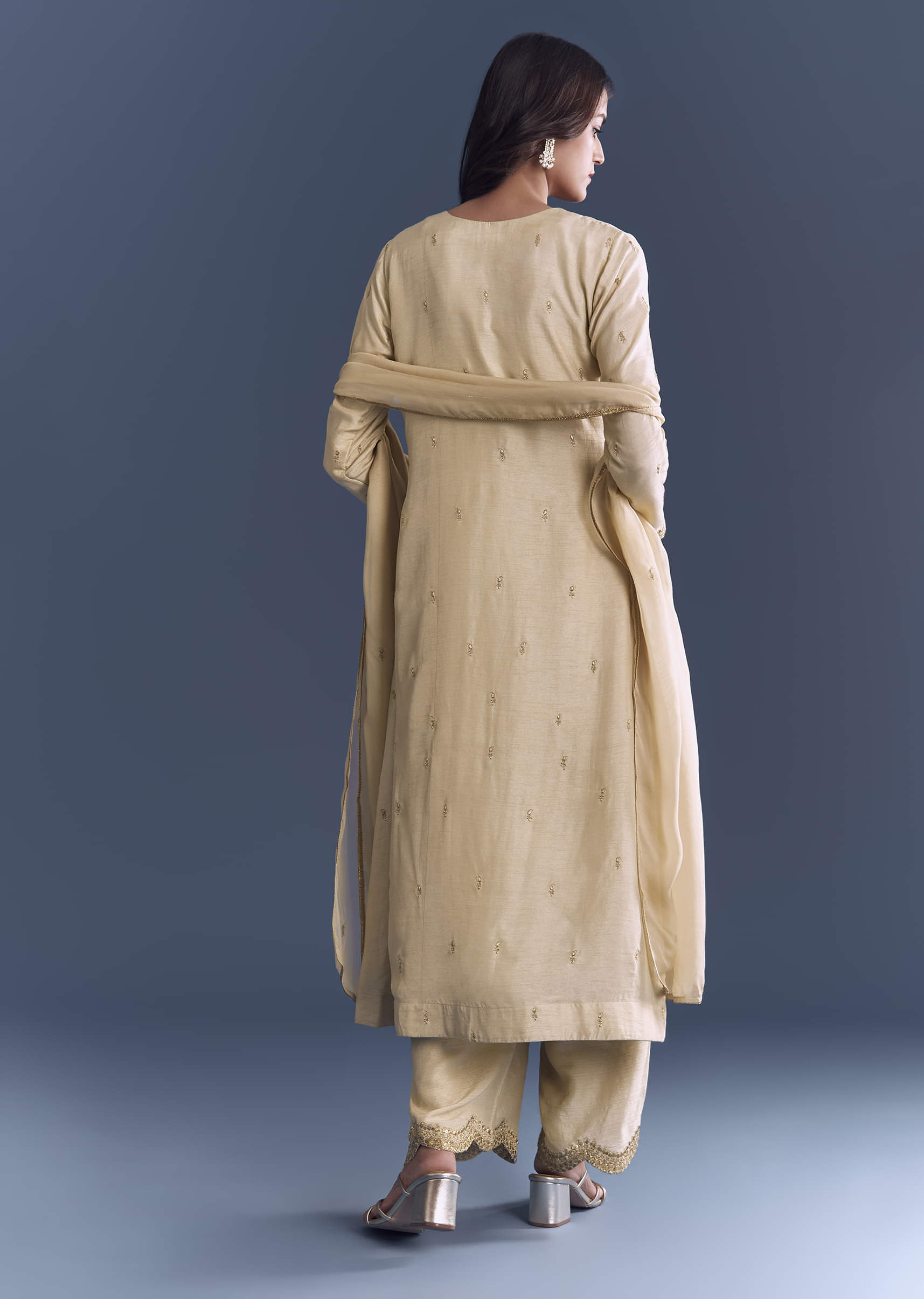 Cream Silk Anarkali Suit With Zari Thread Embroidery