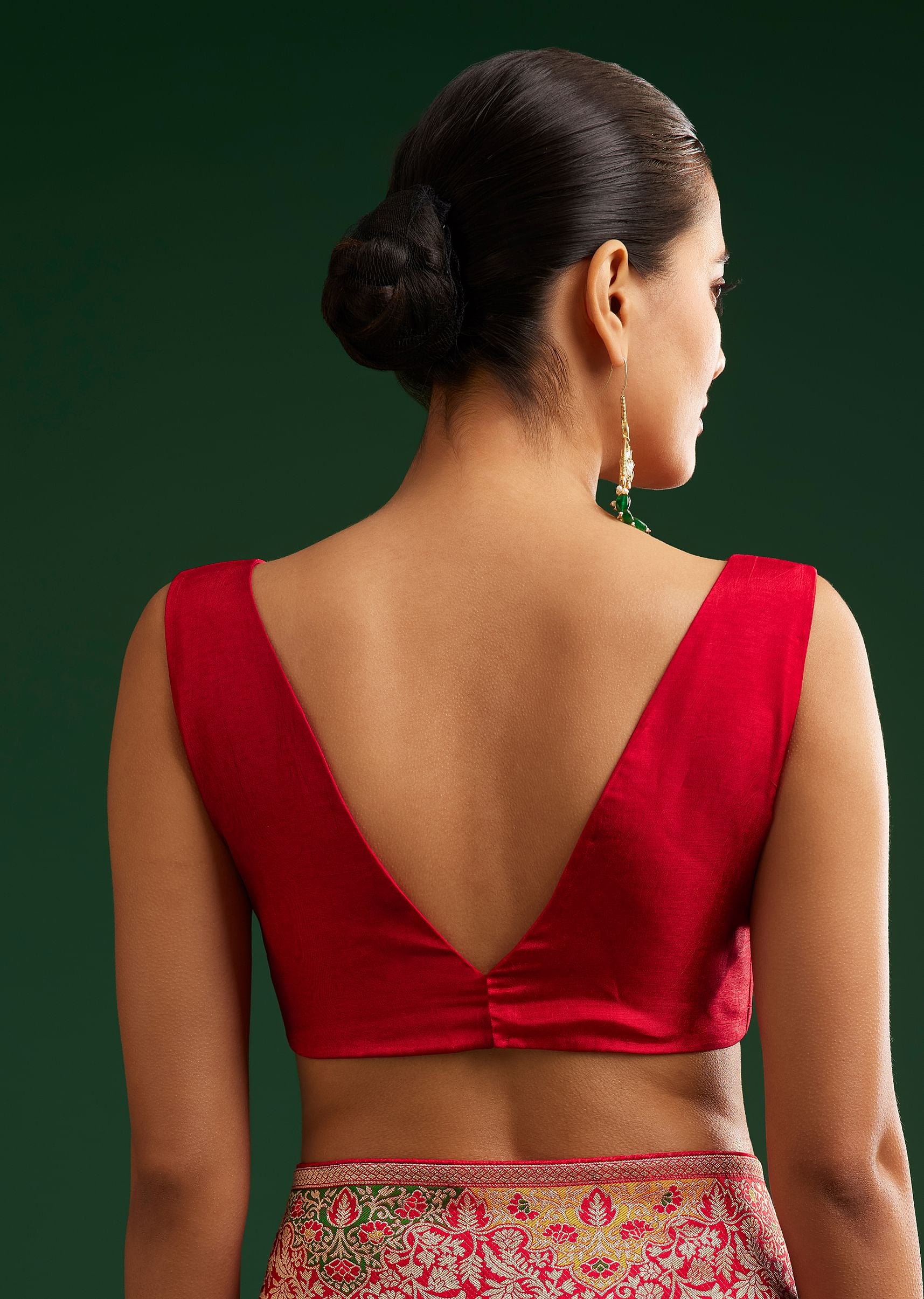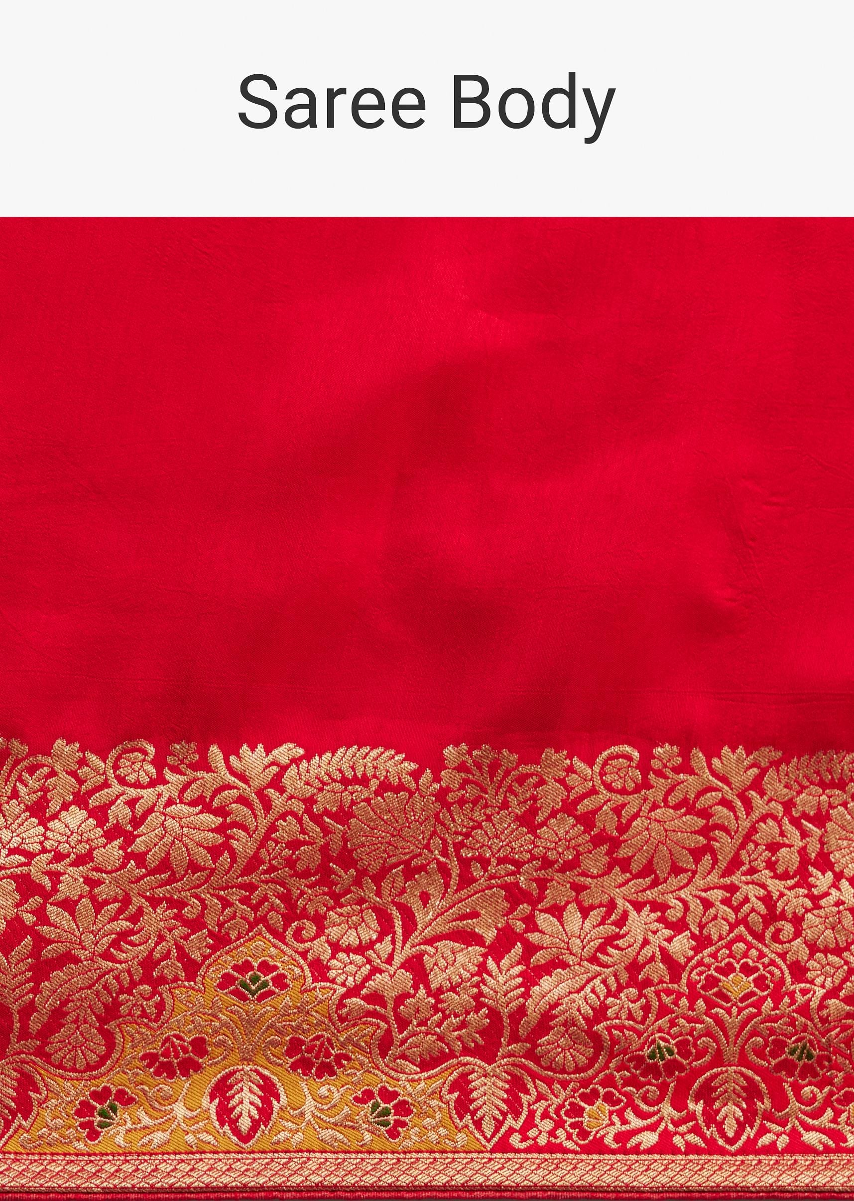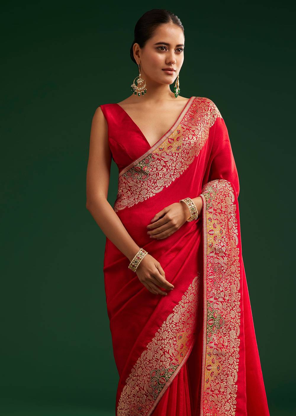 Adorn yourself in rich elegance with this crimson Dola silk saree, meticulously woven with delicate zari work. Its classic design and vibrant hue make it perfect for weddings, celebrations, and formal gatherings. Awarded as the Most Trusted Brand, we're delivering styles you love, just as promised.