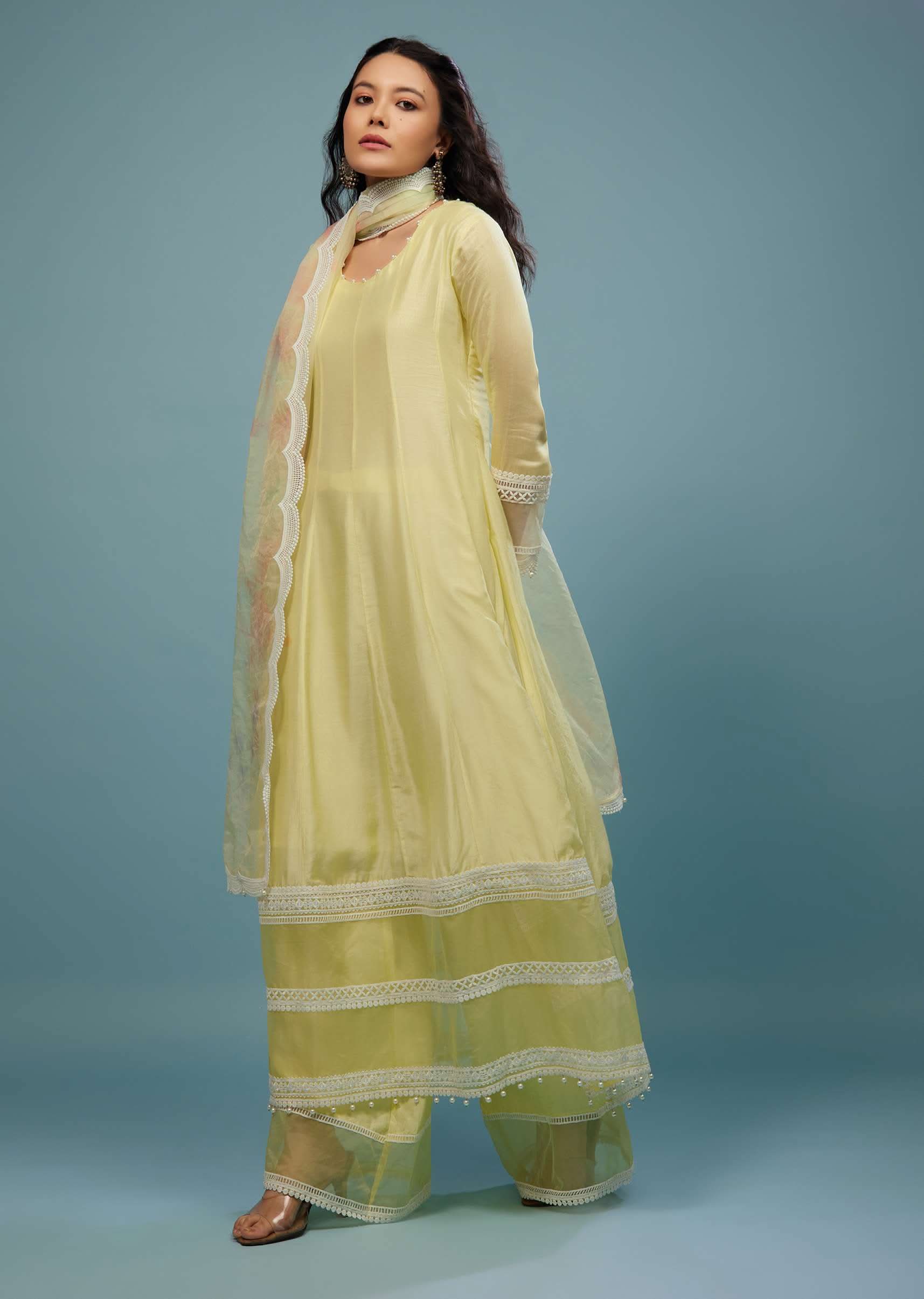 Daffodils Yellow Palazzo Suit In Viscose Silk