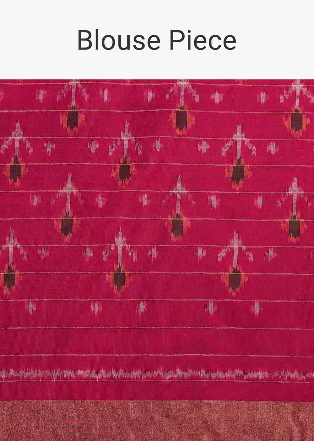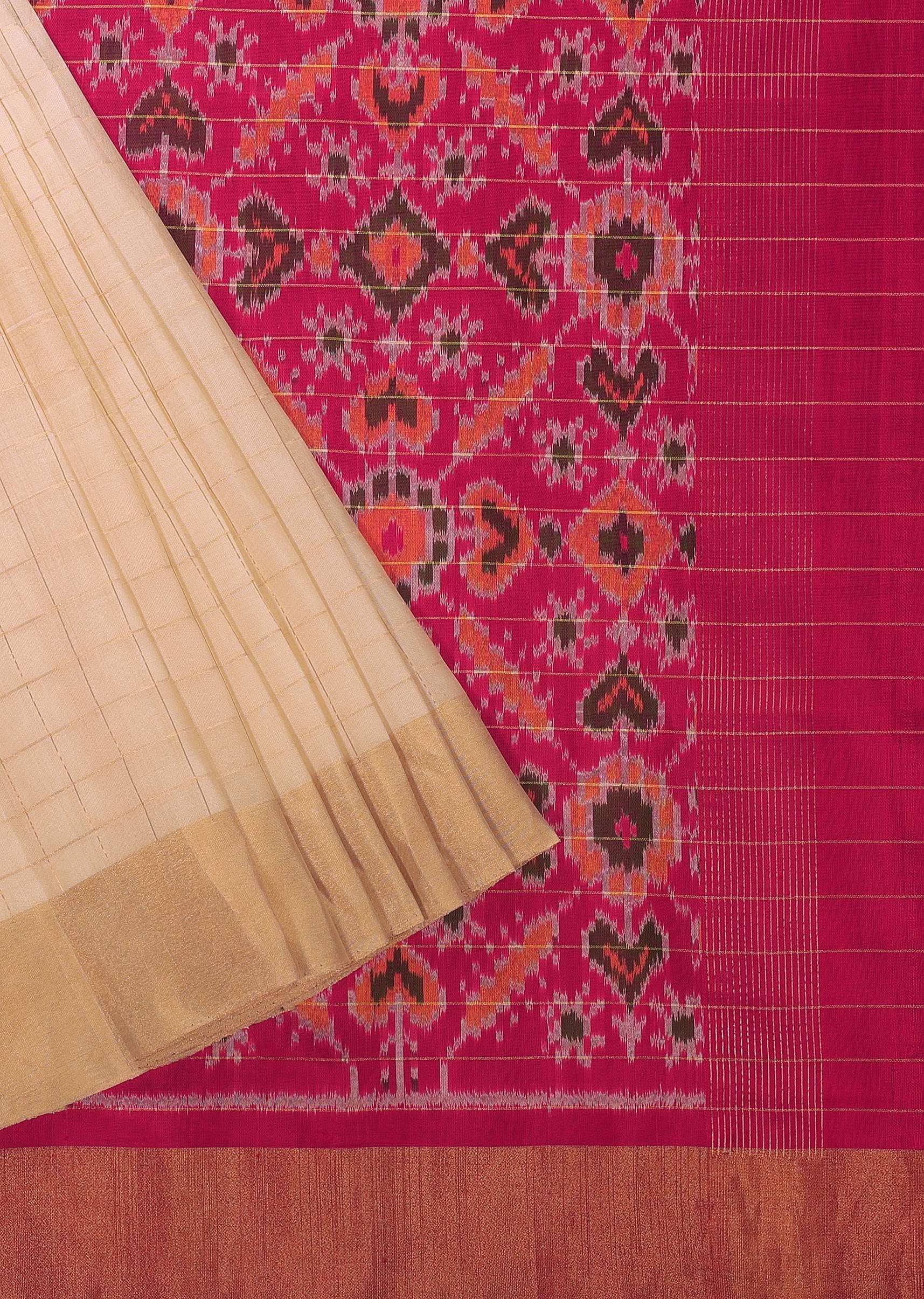 - Our white album south silk saree with ikat woven patola pallu in cherry pink colour.