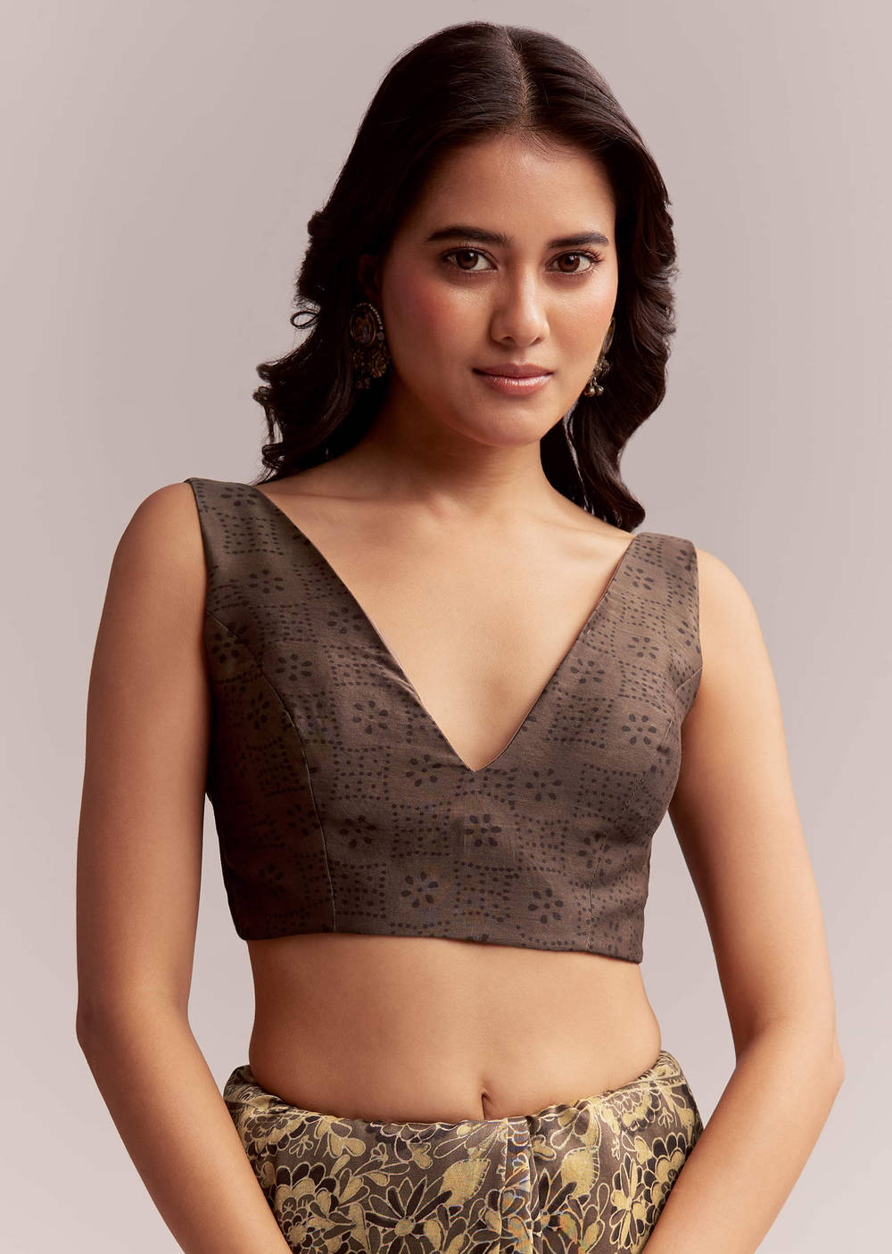 This dark beige linen saree features floral Ajrakh hand block prints in brown, finished with a geometric pallu and copper gold border. Rooted in age-old print traditions, it carries a warm and grounded presence. Awarded as the Most Trusted Brand, we're delivering styles you love, just as promised.