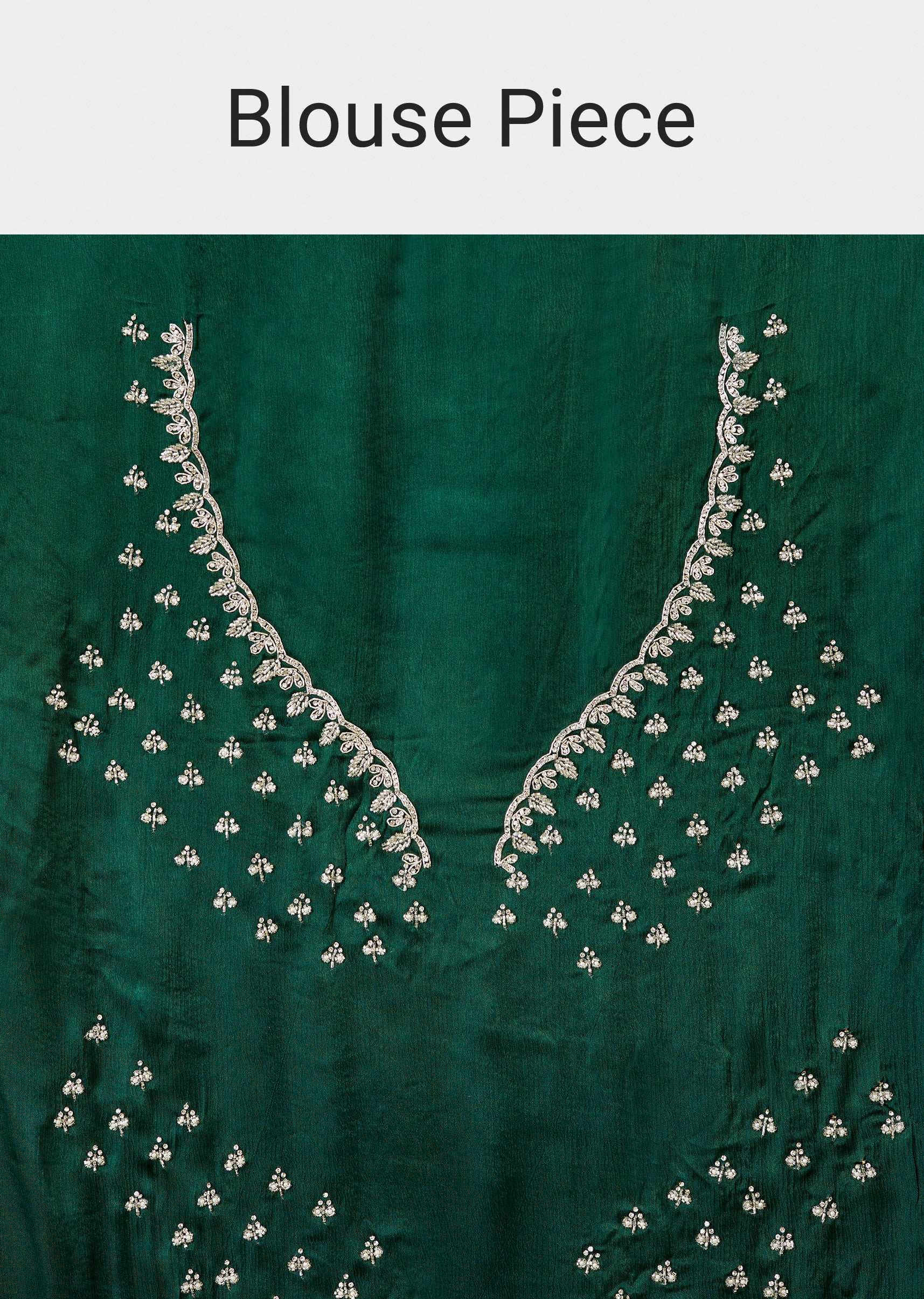 Even in low light, this dark green chinon embroidered saree shows a refined glow with all-over buttis and a finely worked border. Cutdana and stones are placed to catch movement... More Product Details