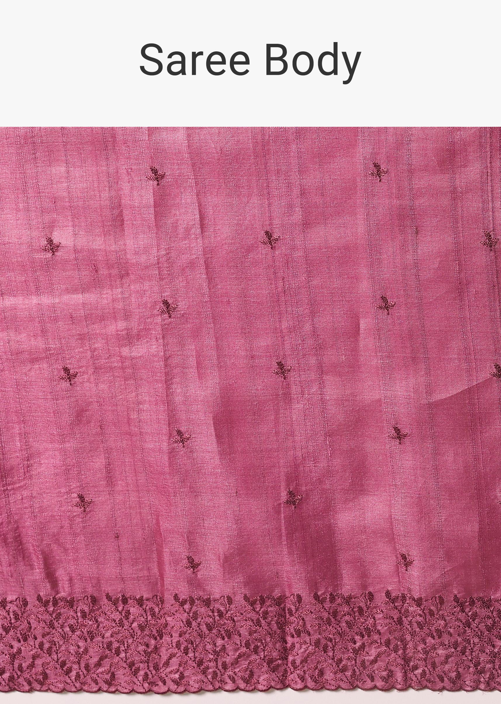Dark Pink Saree With Resham Work And Unstitched Blouse
