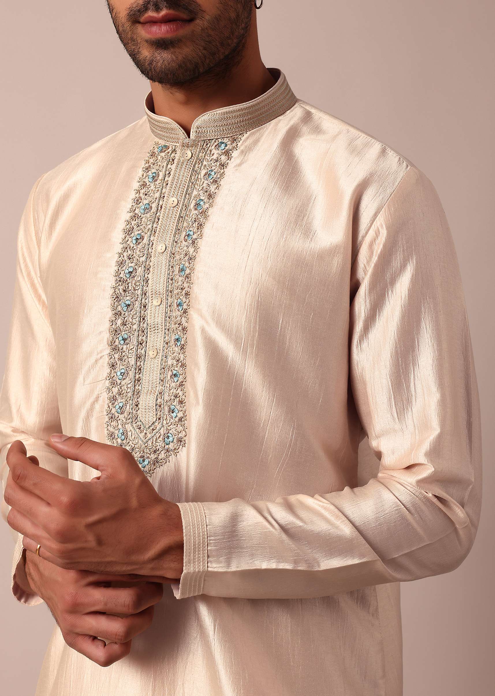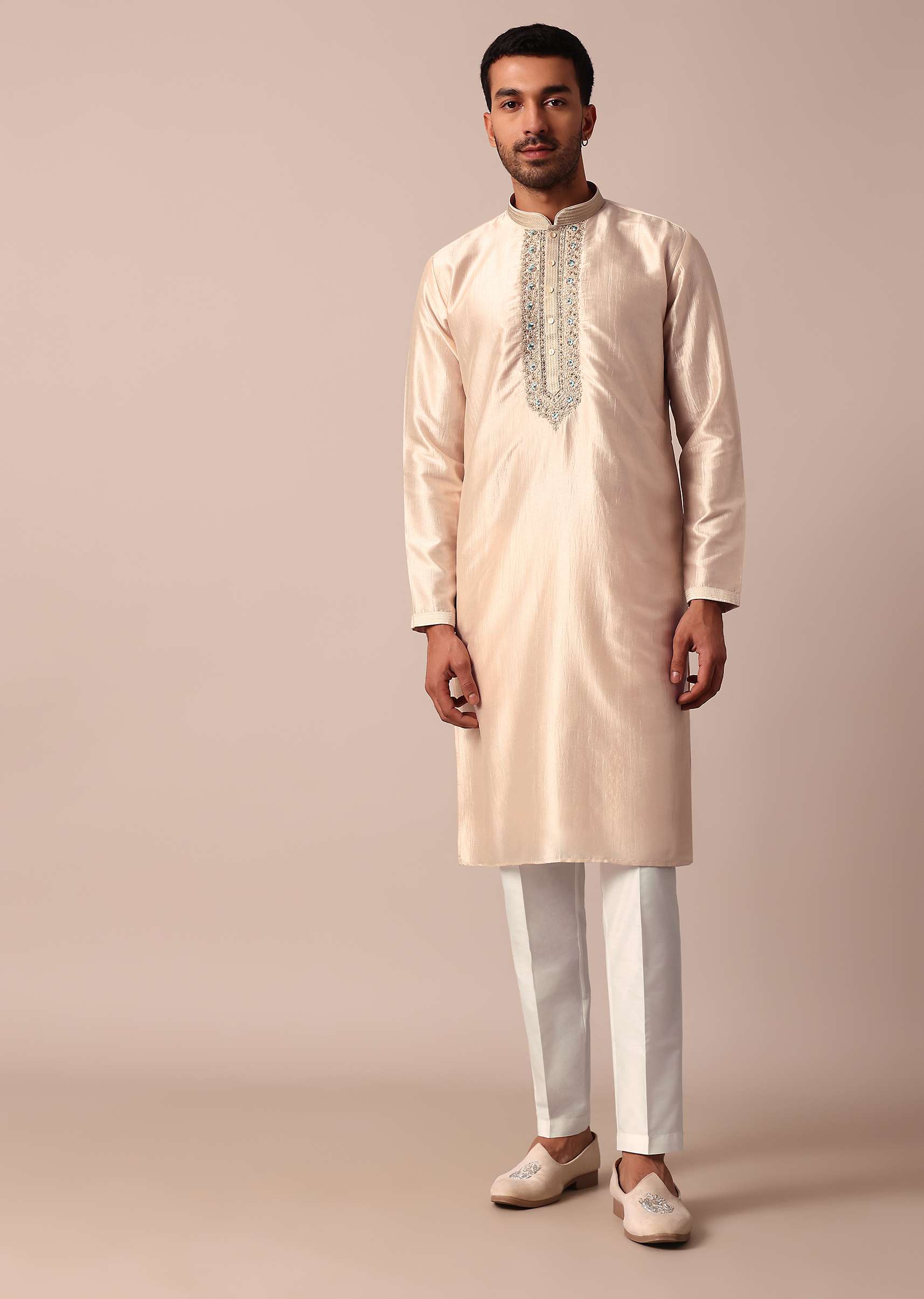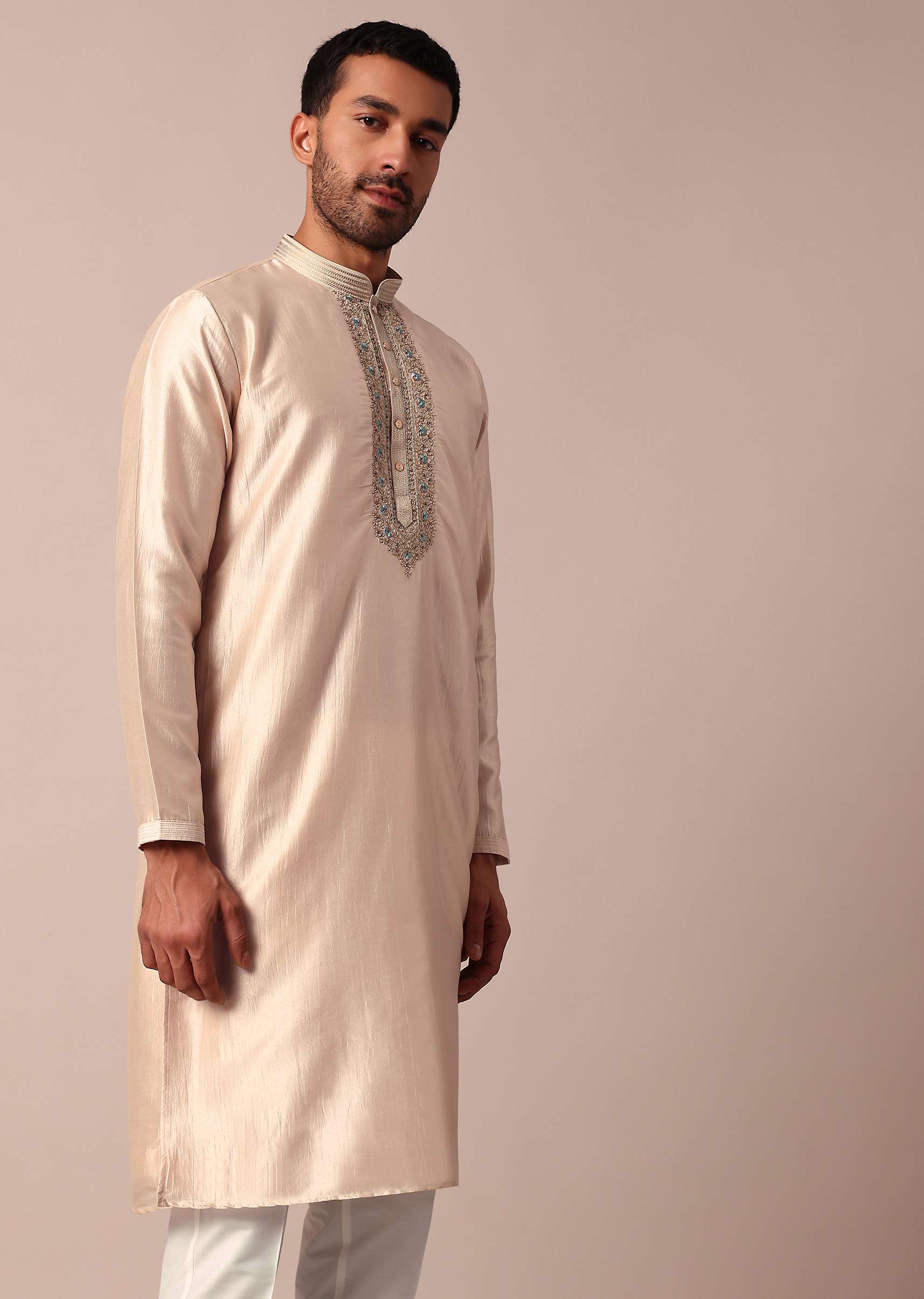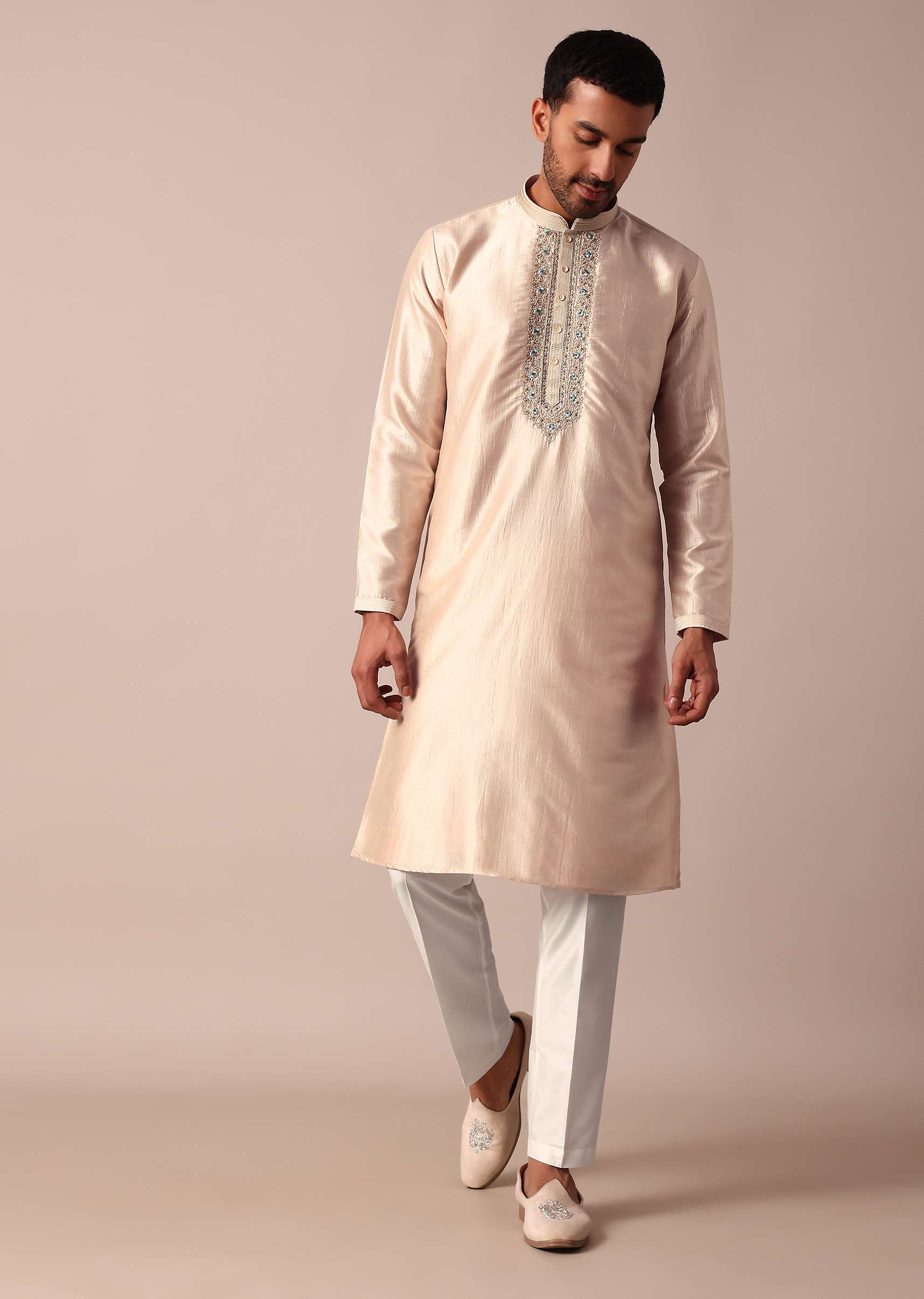 Fit Tips:Opt for a well-fitted kurta to showcase the intricate hand embroidery on the yoke.