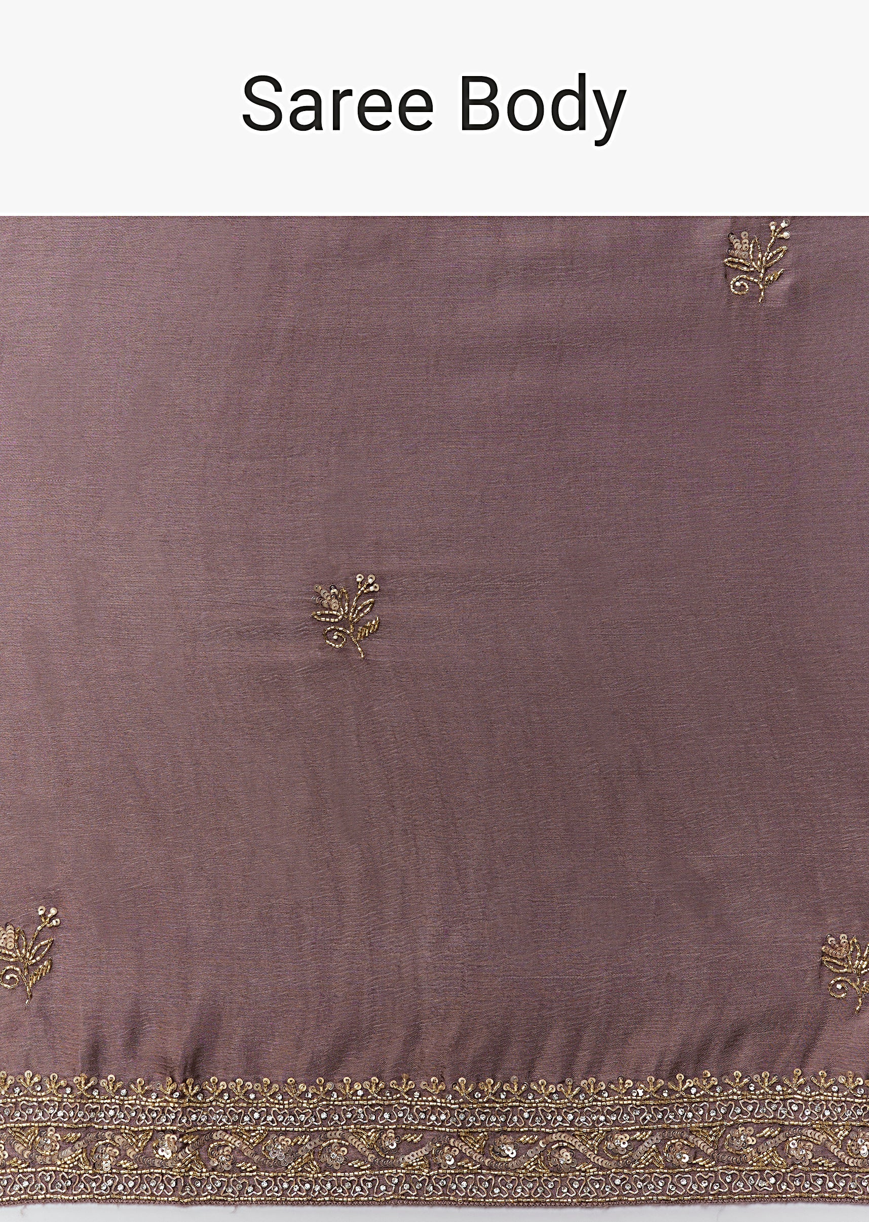 Dusky Brown Chinnon Saree With Cutdana Beads And Sequin Embroidery