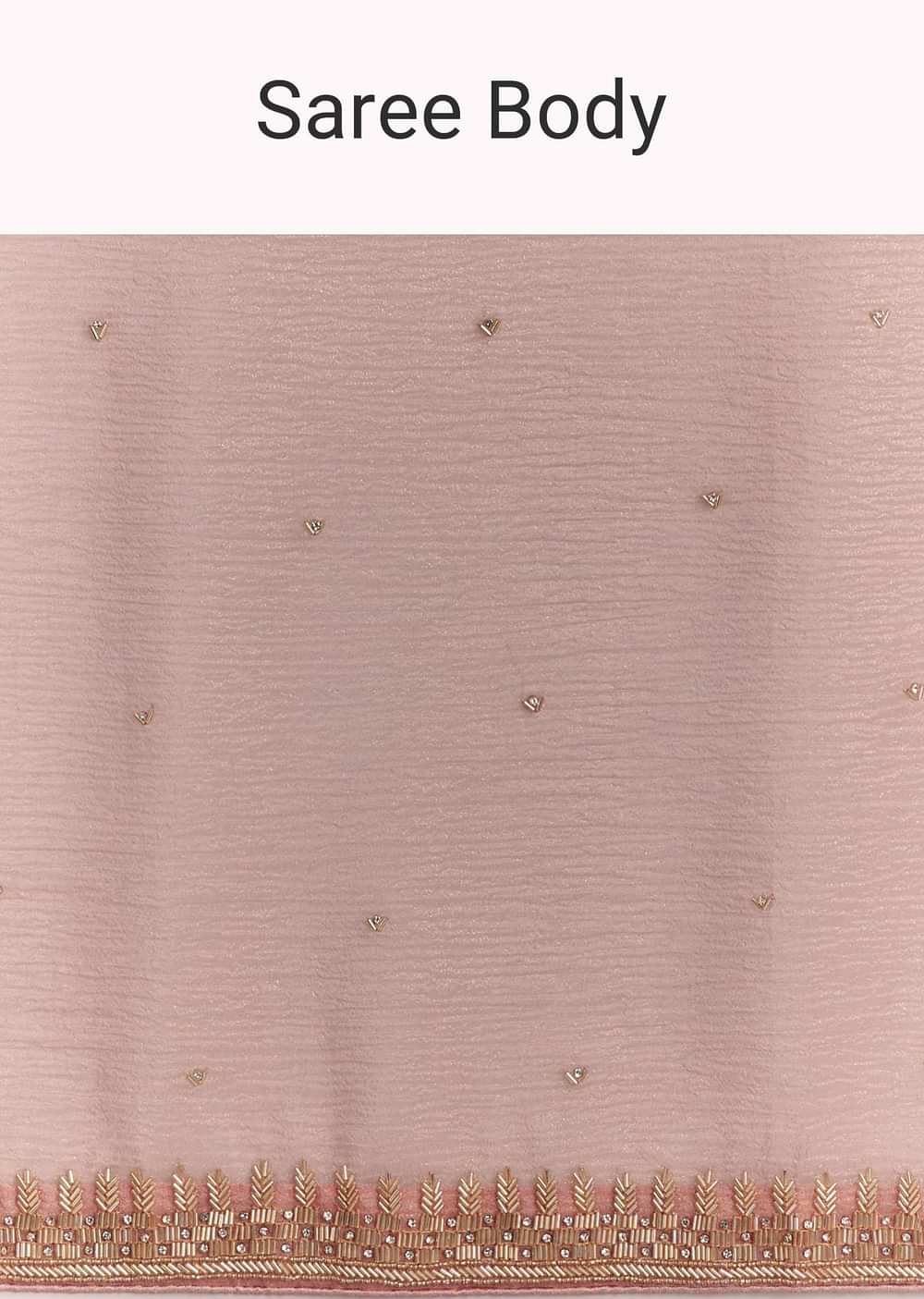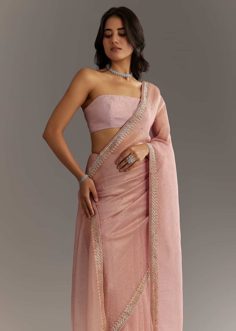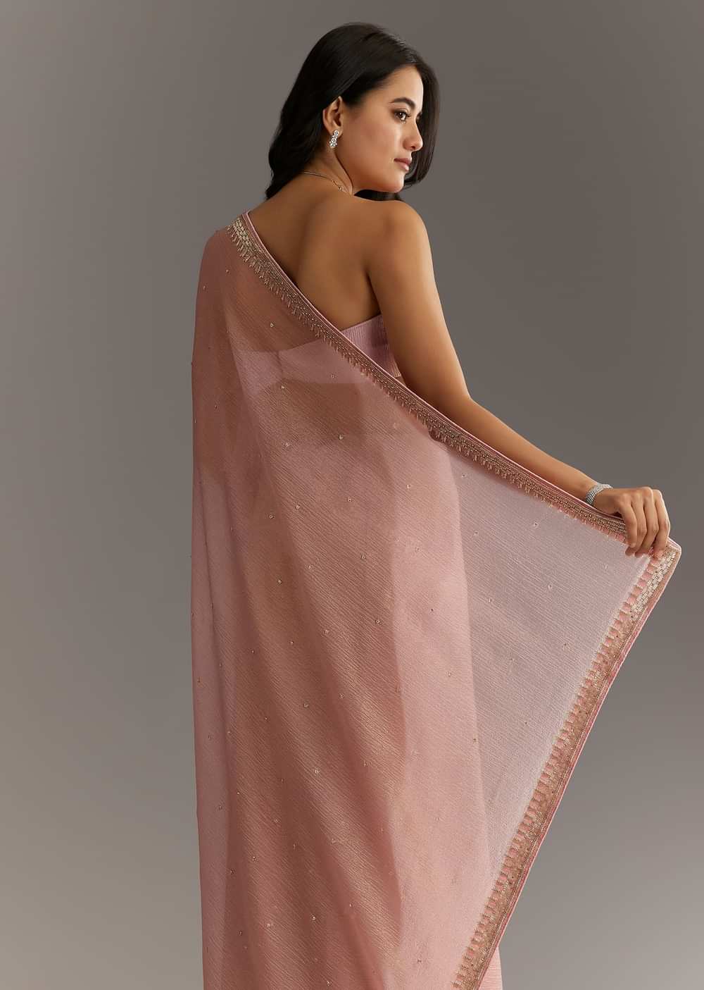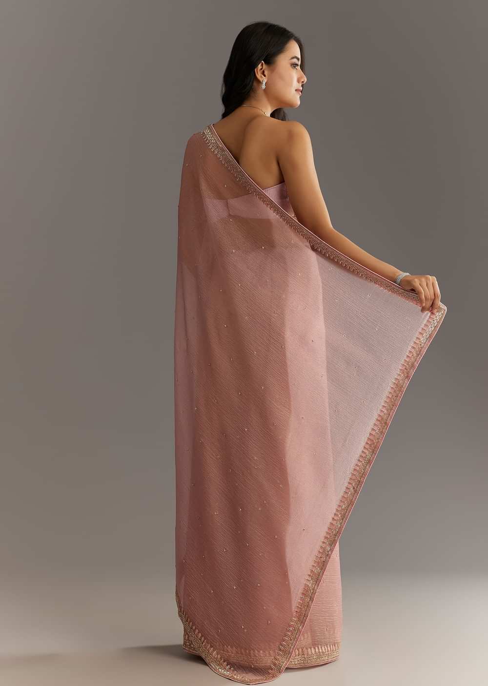 Dusty Rose Cutdana And Stone Embroidered Tissue Saree