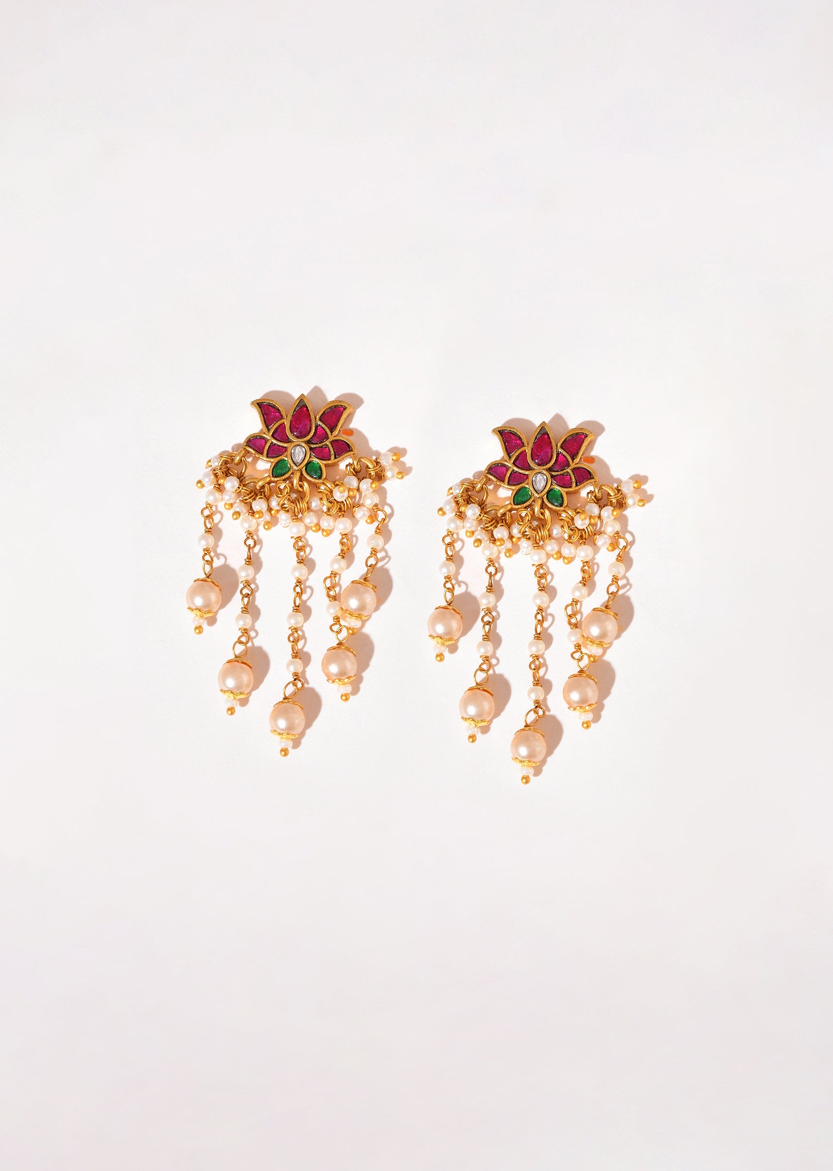 These multi gold earrings feature intricate pachi kundan detailing for a festive and elegant appeal. Perfect for weddings and special celebrations, they add sophistication and charm to traditional attire. The warm gold tones combined with exquisite craftsmanship create a statement piece that complements ethnic ensembles beautifully.Awarded as the Most Trusted Brand, we're delivering styles you love, just as promised.