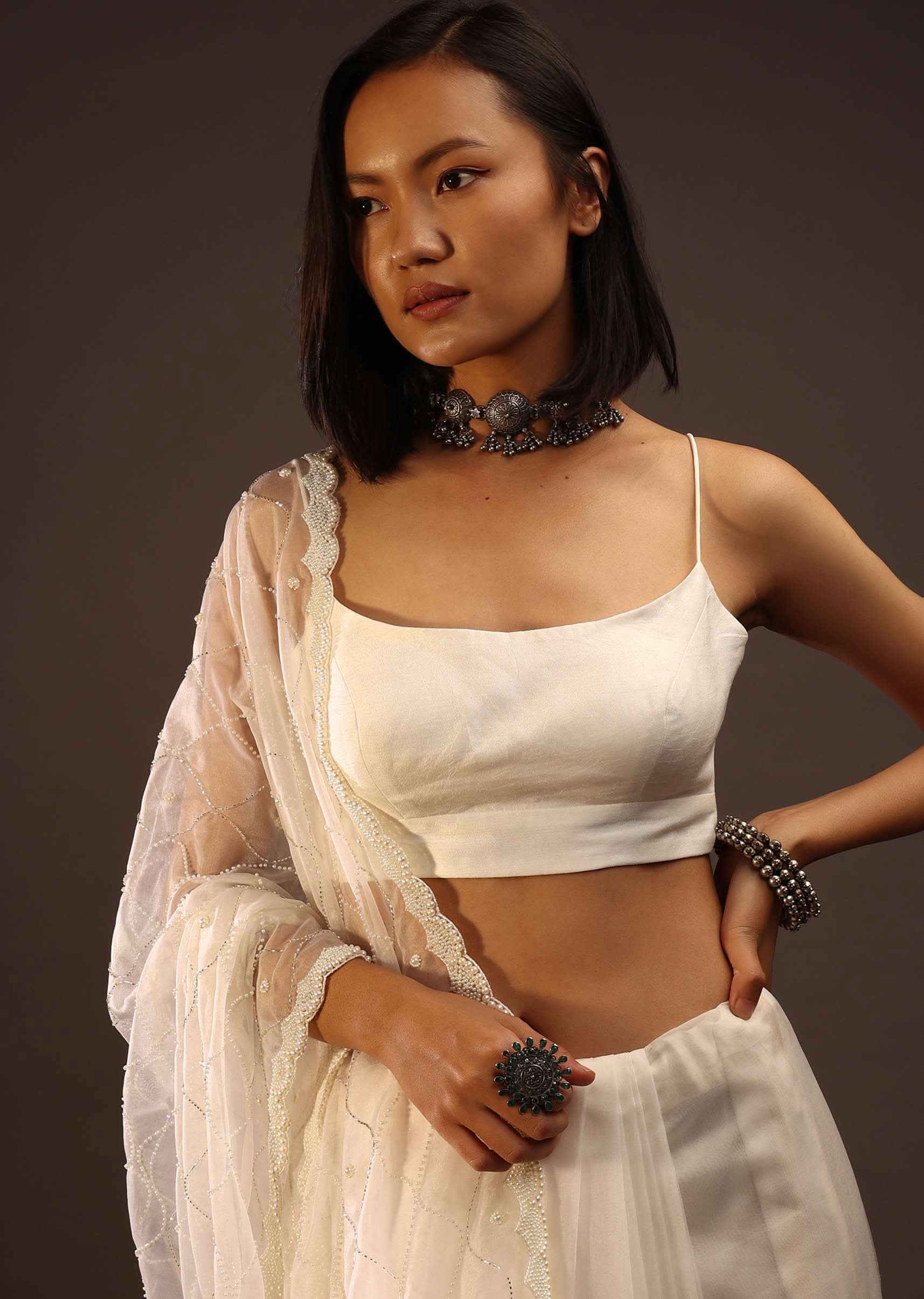 - Pair it up with a white net dupatta, Loha choker, oxidized ring, and bracelet to give that ethnic and contemporary appeal.
