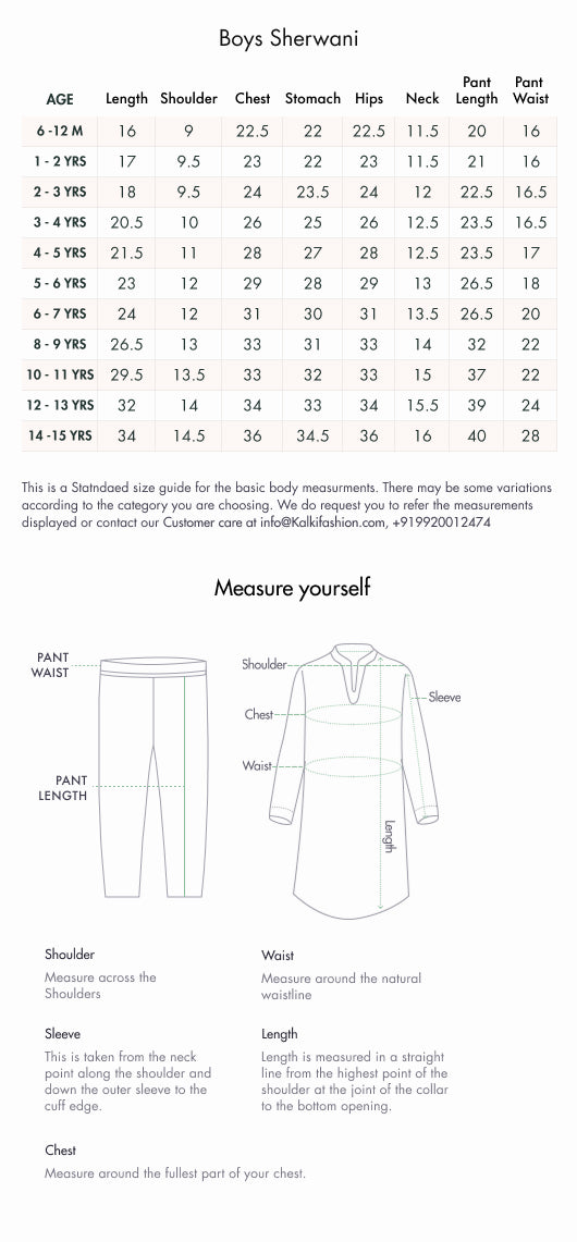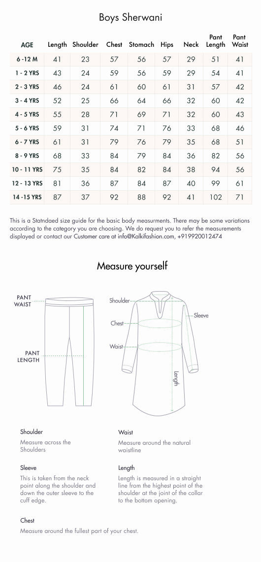 Fit Tips:Ensure the Sherwani fits comfortably around the shoulders for ease of movement.