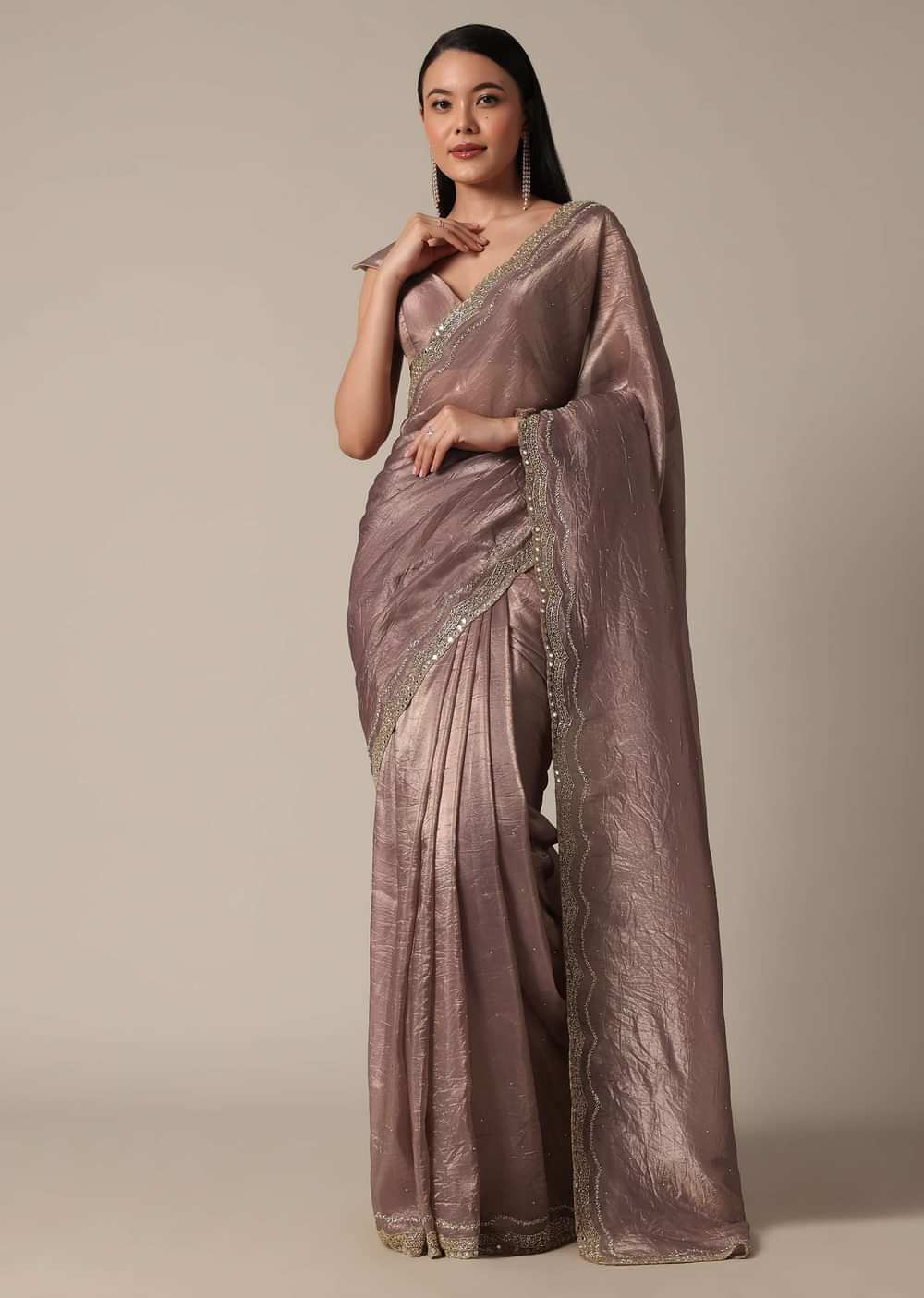- Discover elegance in the details with this Brown Glass Crush Saree.
