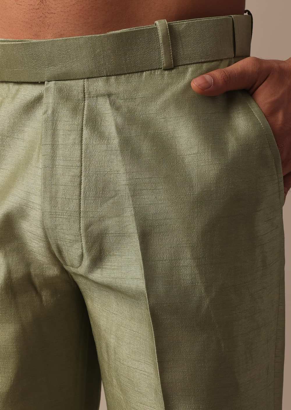 Pair the Green Silk Indowestern with contrasting accessories to enhance the vibrant color and intricate detailing creating a unique and stylish Sangeet ensemble.