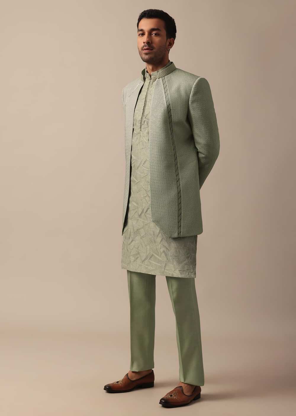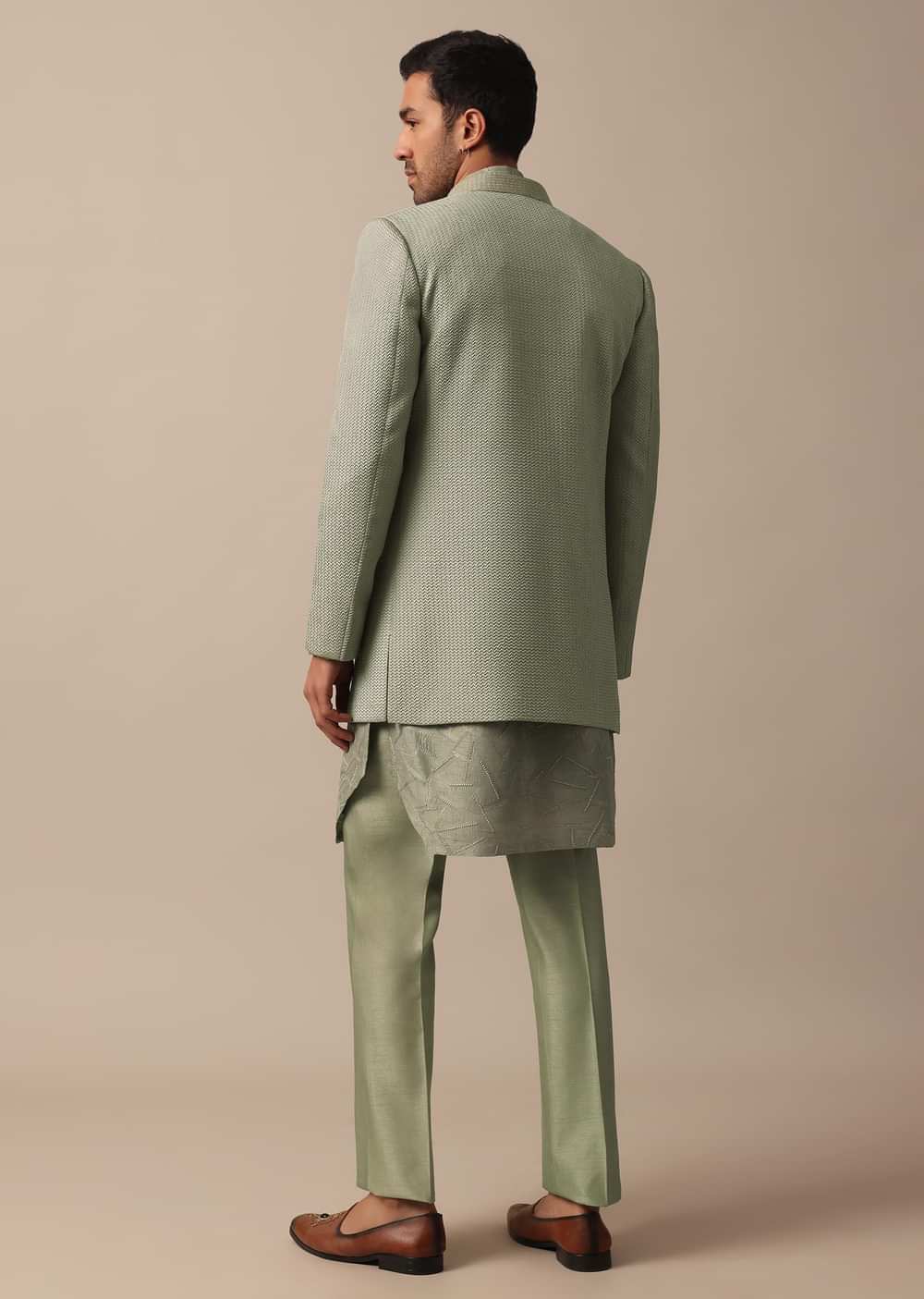 Elegant Green Indowestern Set Featuring Striking Self Work
