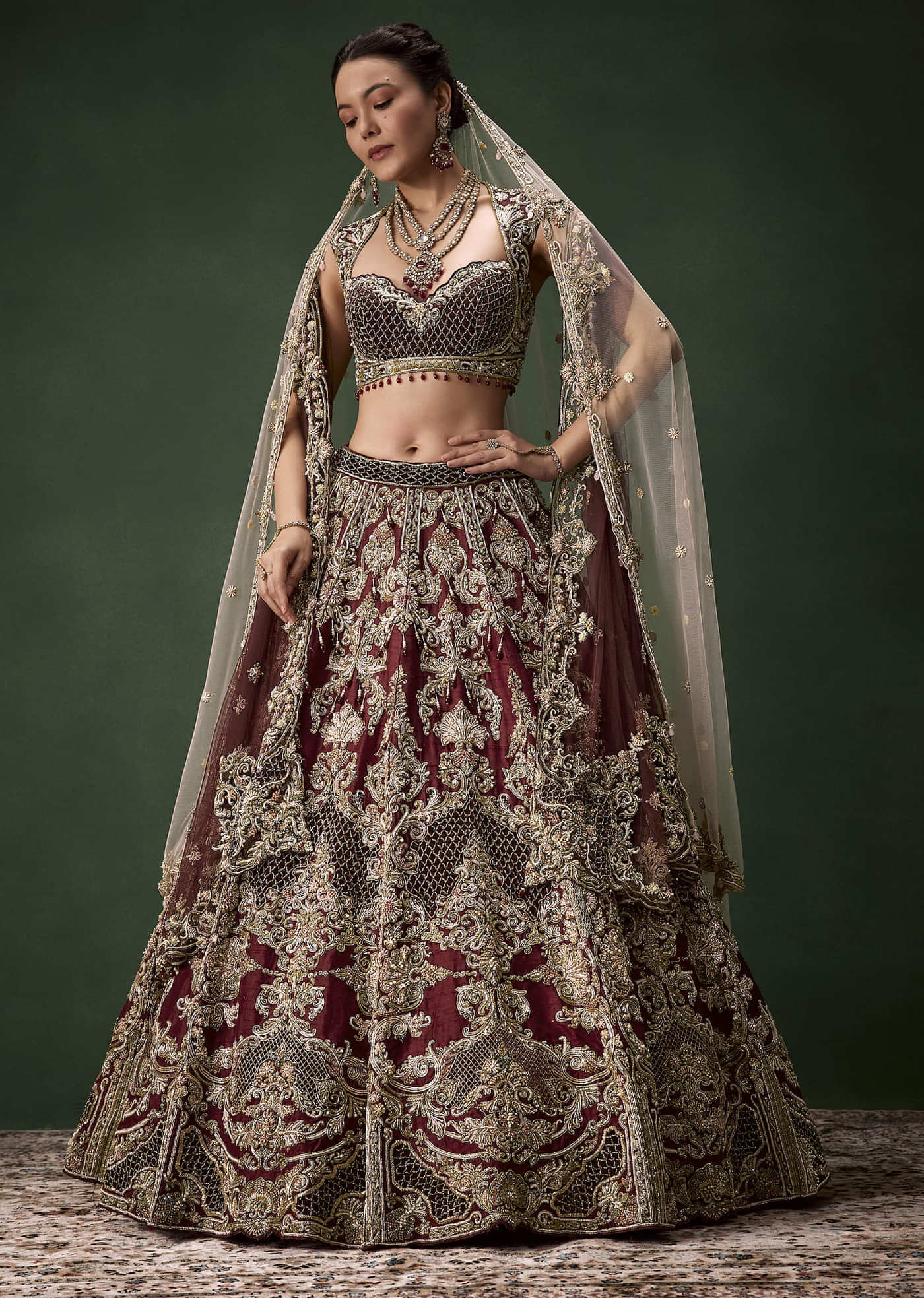 Rooted in timeless bridal artistry, this lehenga set brings together rich tradition and modern elegance. Intricately embellished with detailed handwork across the lush canvas, it offers depth, texture, and a... More Product Details